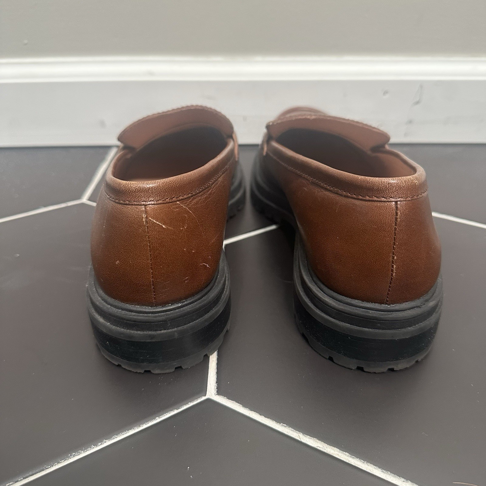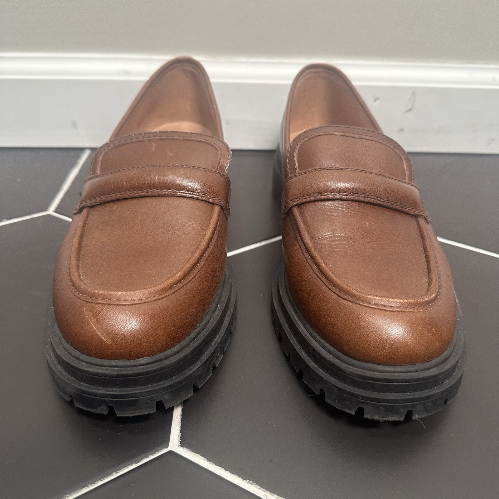 как выглядит Madewell Womens Bradley Lugsole Chunky Loafer Brown Cherry Wood Leather Size 8.5 фото