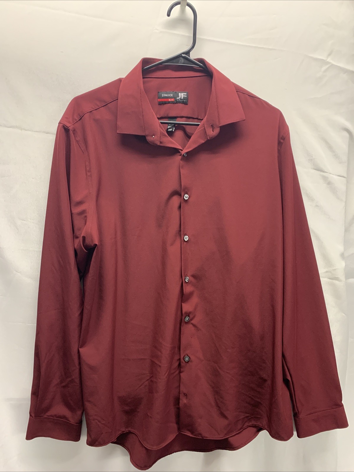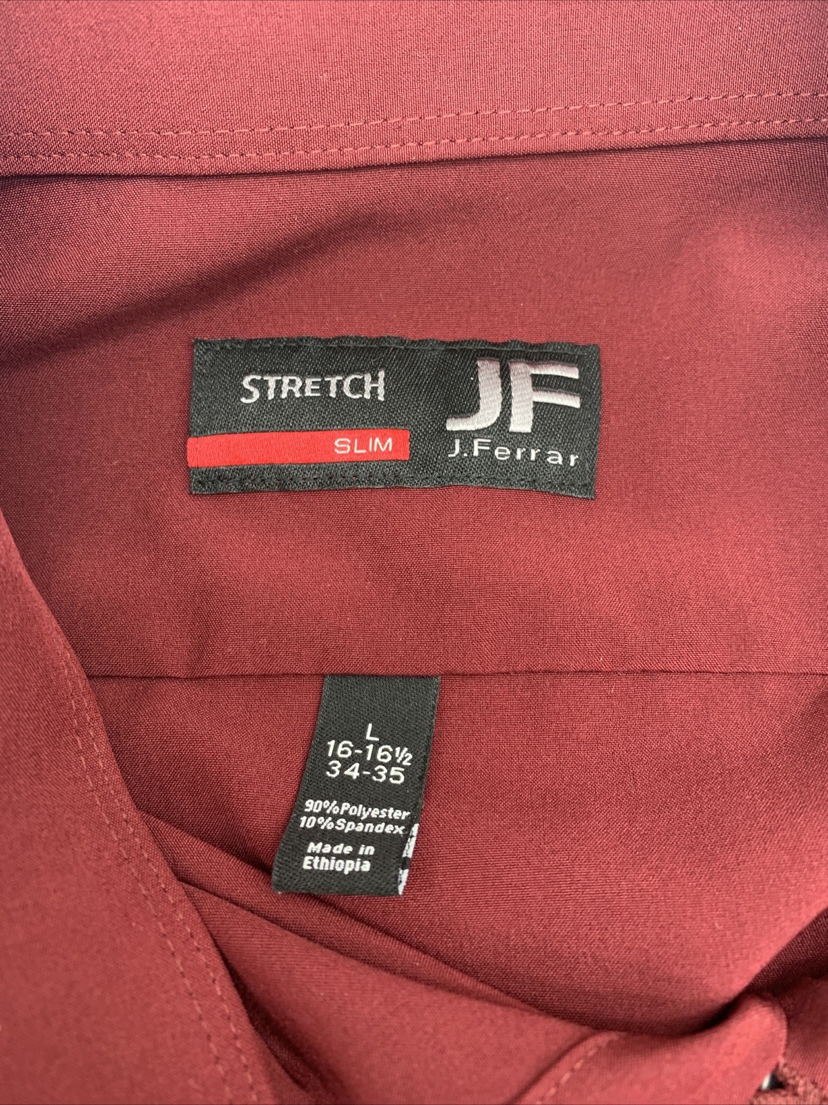 JF J.Ferrar Men s Slim Fit Dress Shirt Burgundy Long Sleeve Size L 16-16.5 34/35