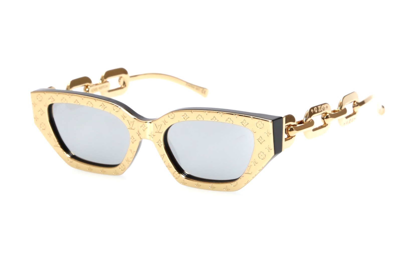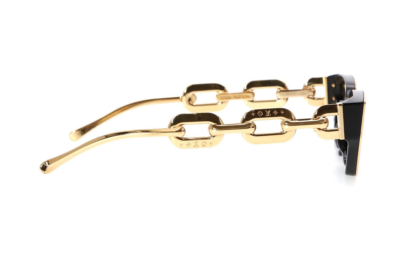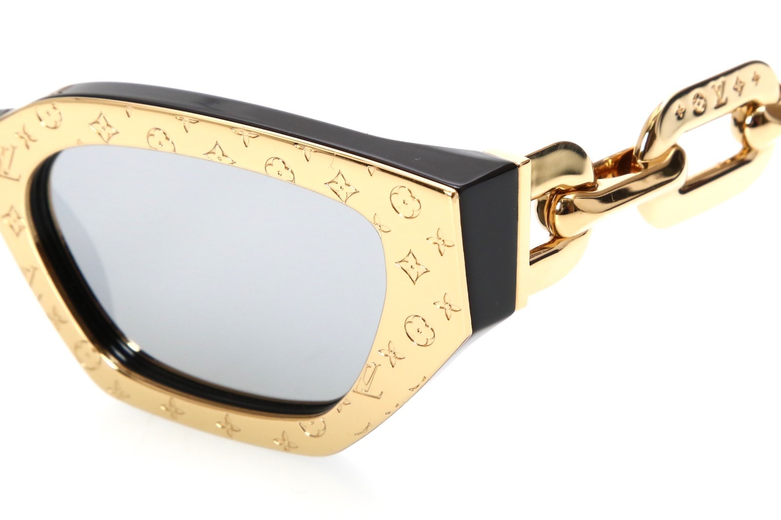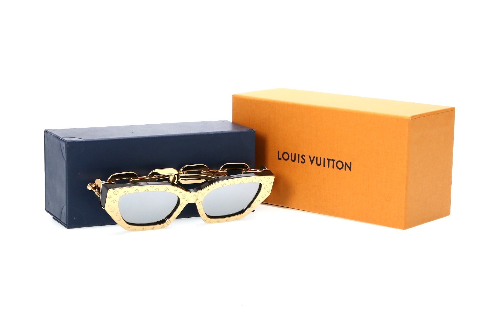 как выглядит LOUIS VUITTON MENS LV MALLETAGE CAT EYE SUNGLASSES Z1476W GOLD CHAIN Pre-Owned фото
