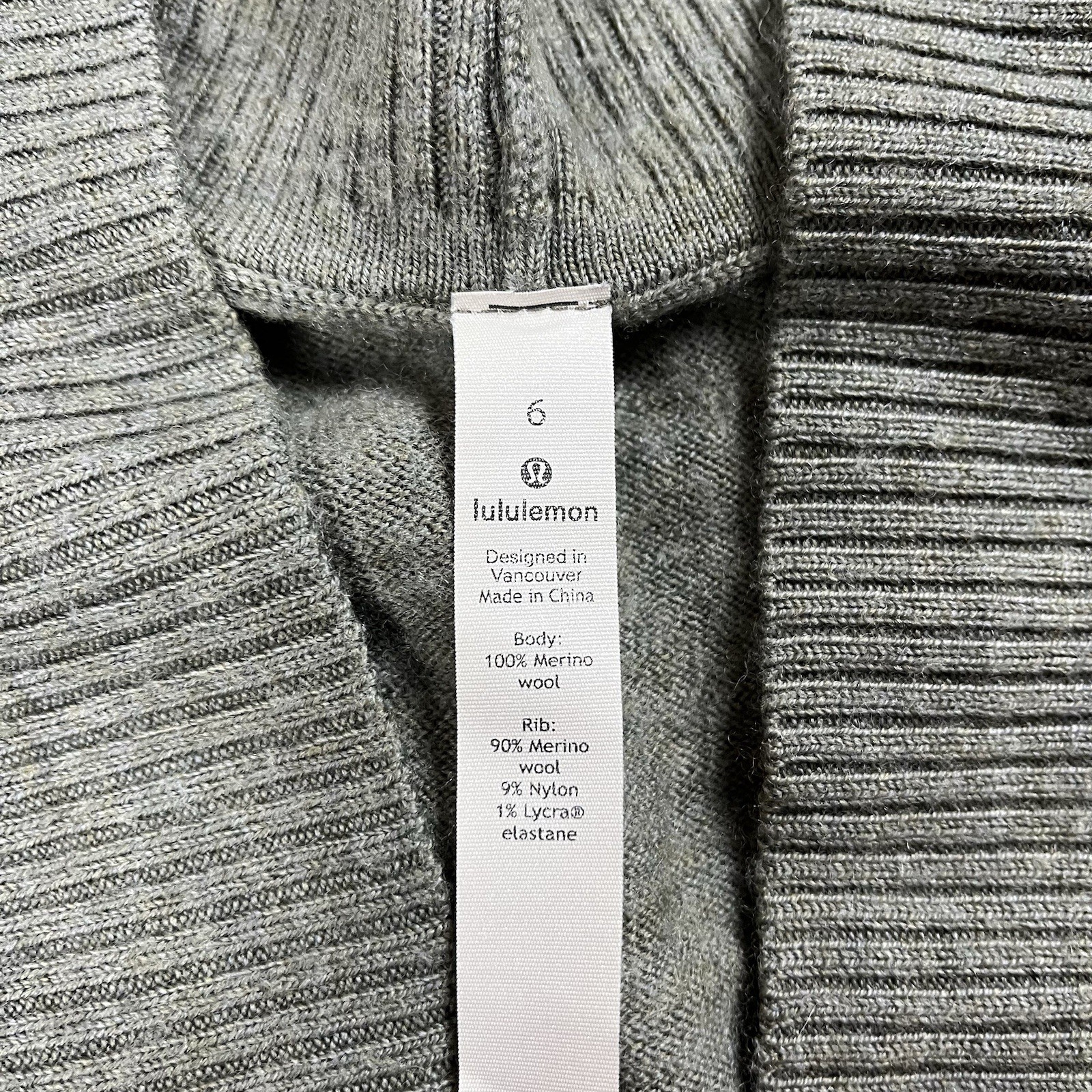 Lululemon Merino Wool Cardigan Sweater Open Front Gray Ribbed Size 6 Athleisure