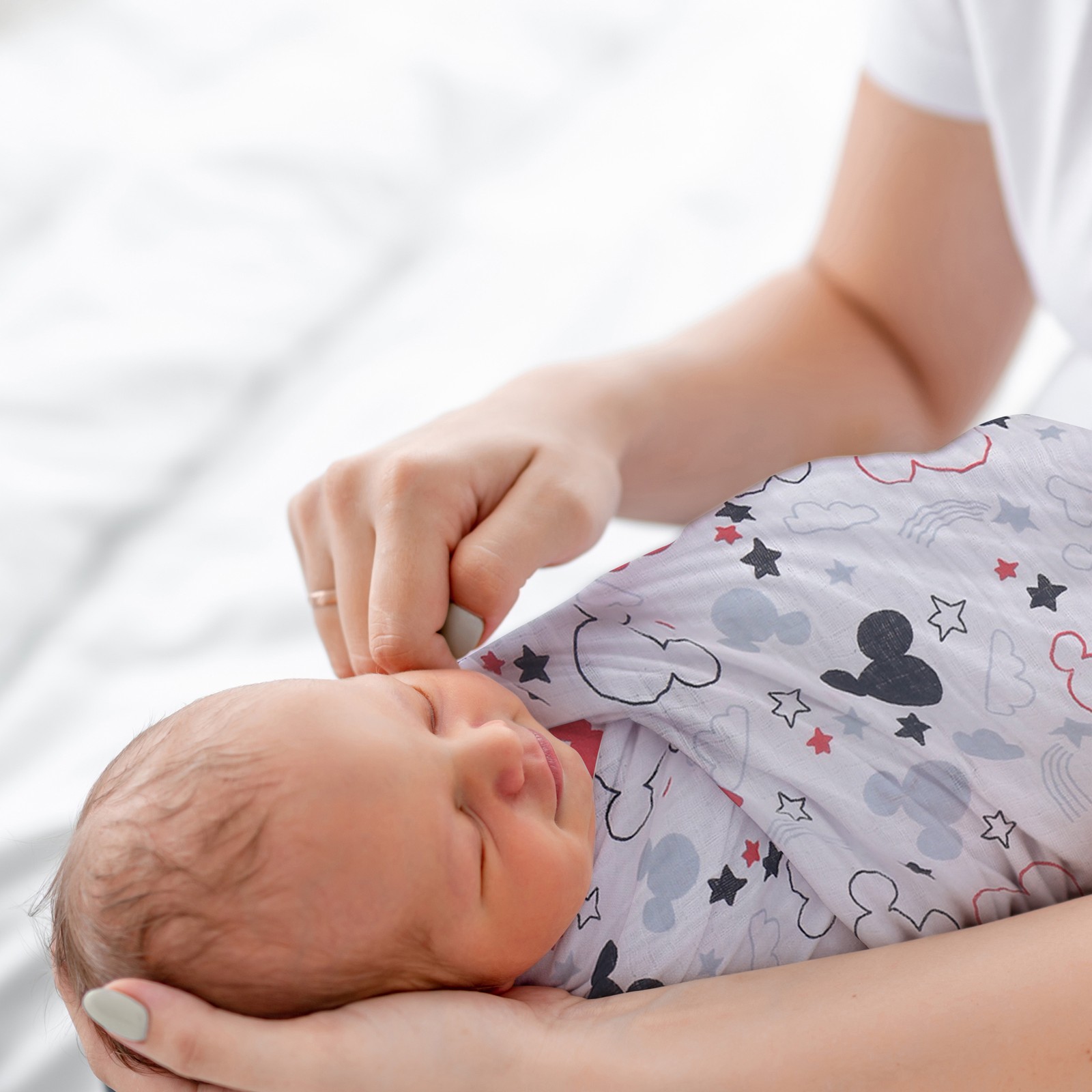 Lambs Ivy Disney Baby Mickey Mouse Muslin Swaddle Blanket Plush Gift Set