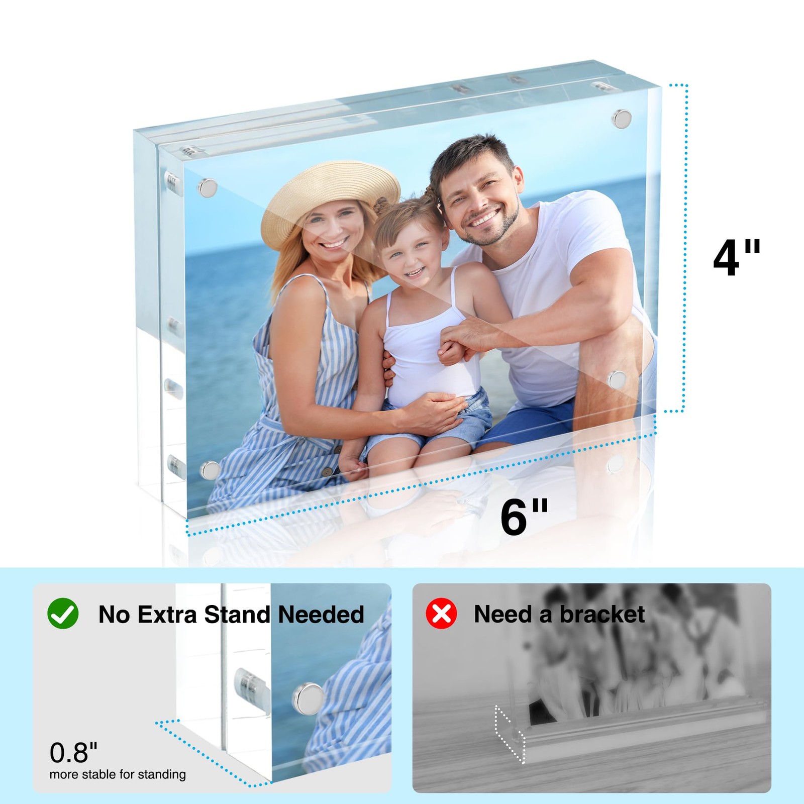 Acrylic Picture Frames 4x6, 3 Pack Magnetic 4 x 6 Picture Frame, Double Sided...