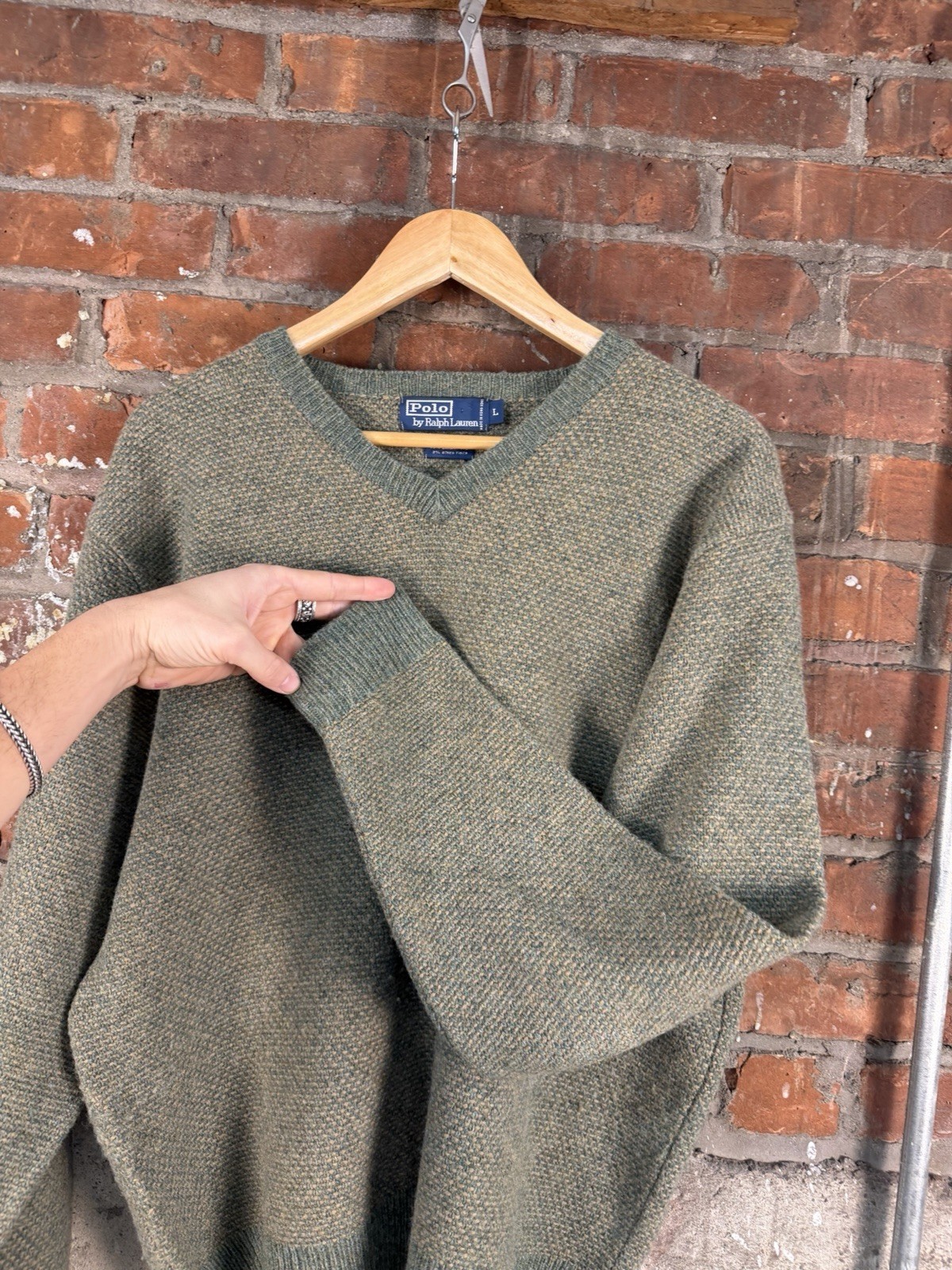 Vintage Polo Ralph Lauren Green Lambswool V-Neck Sweater - size Large