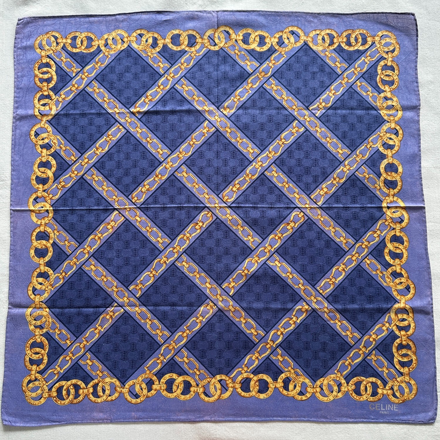 как выглядит VTG Handkerchief Blue Fabric Woven Monogram Lattice Gold Chain Kerchief 20" K1 фото