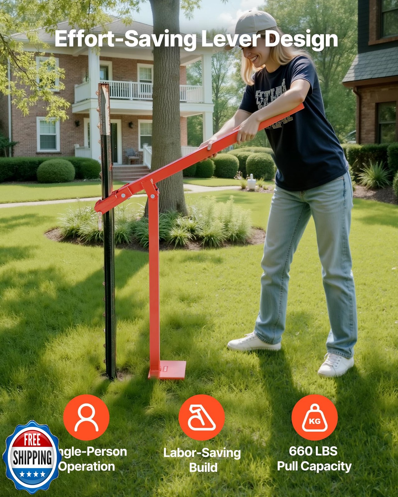 • VEVOR 32 in T Post Puller, Heavy Duty Fence Post Puller with 43 in Lifting Ch...