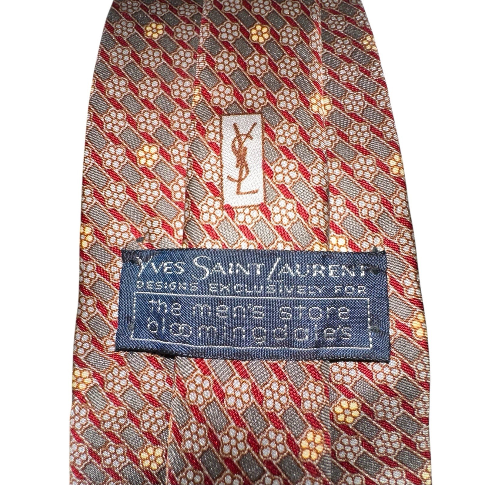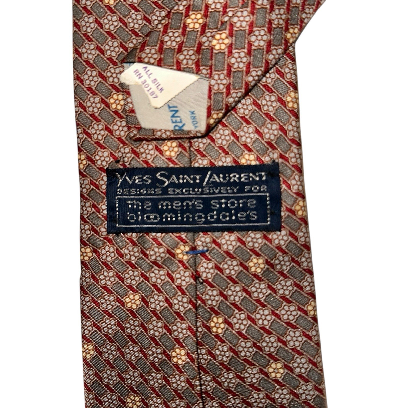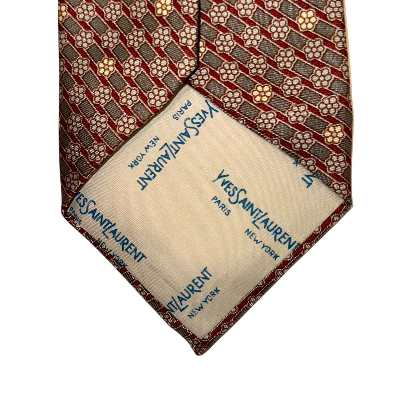 Yves Saint Laurent Mens Tie Silk Burgundy Yellow Floral 57x3.5 Vtg NWOT