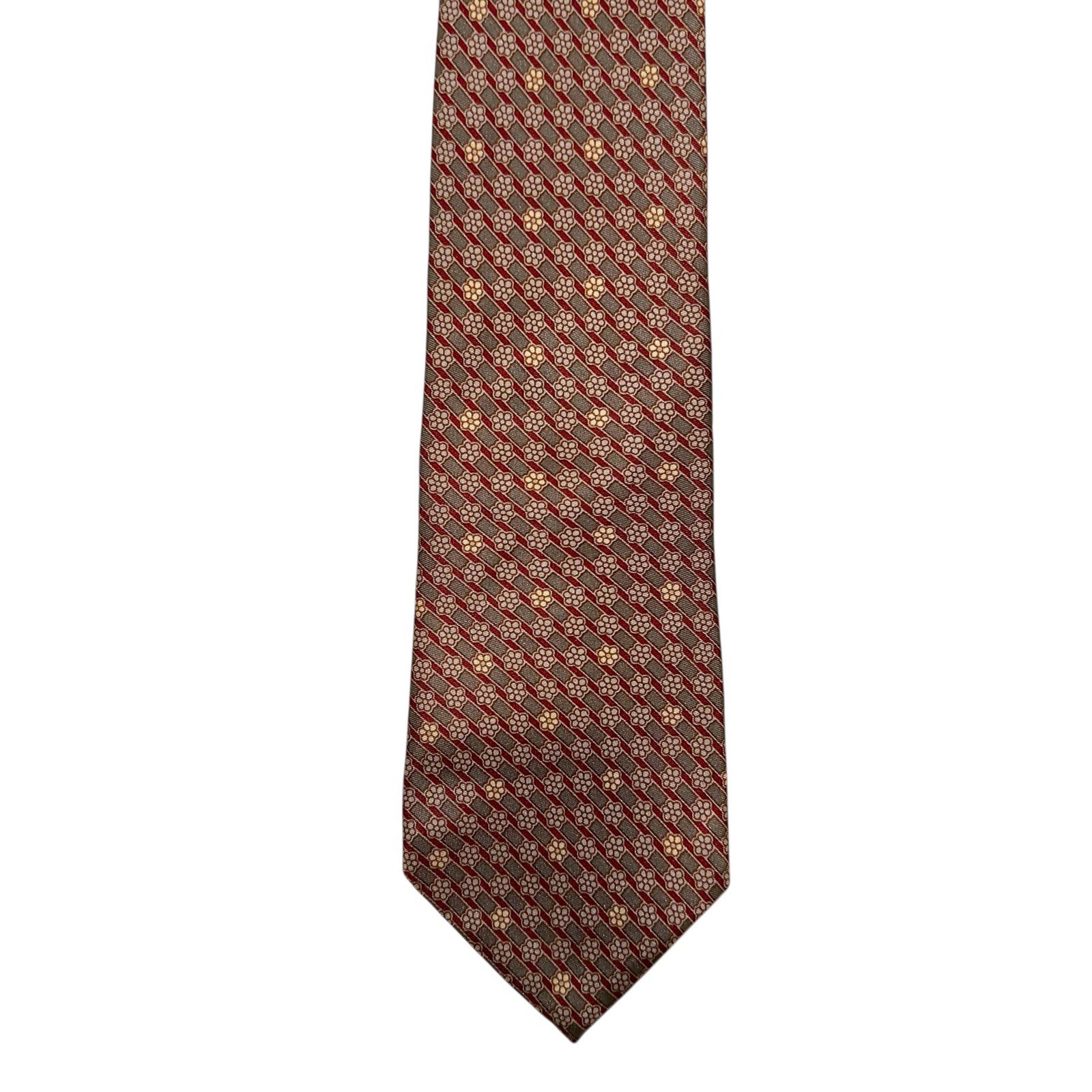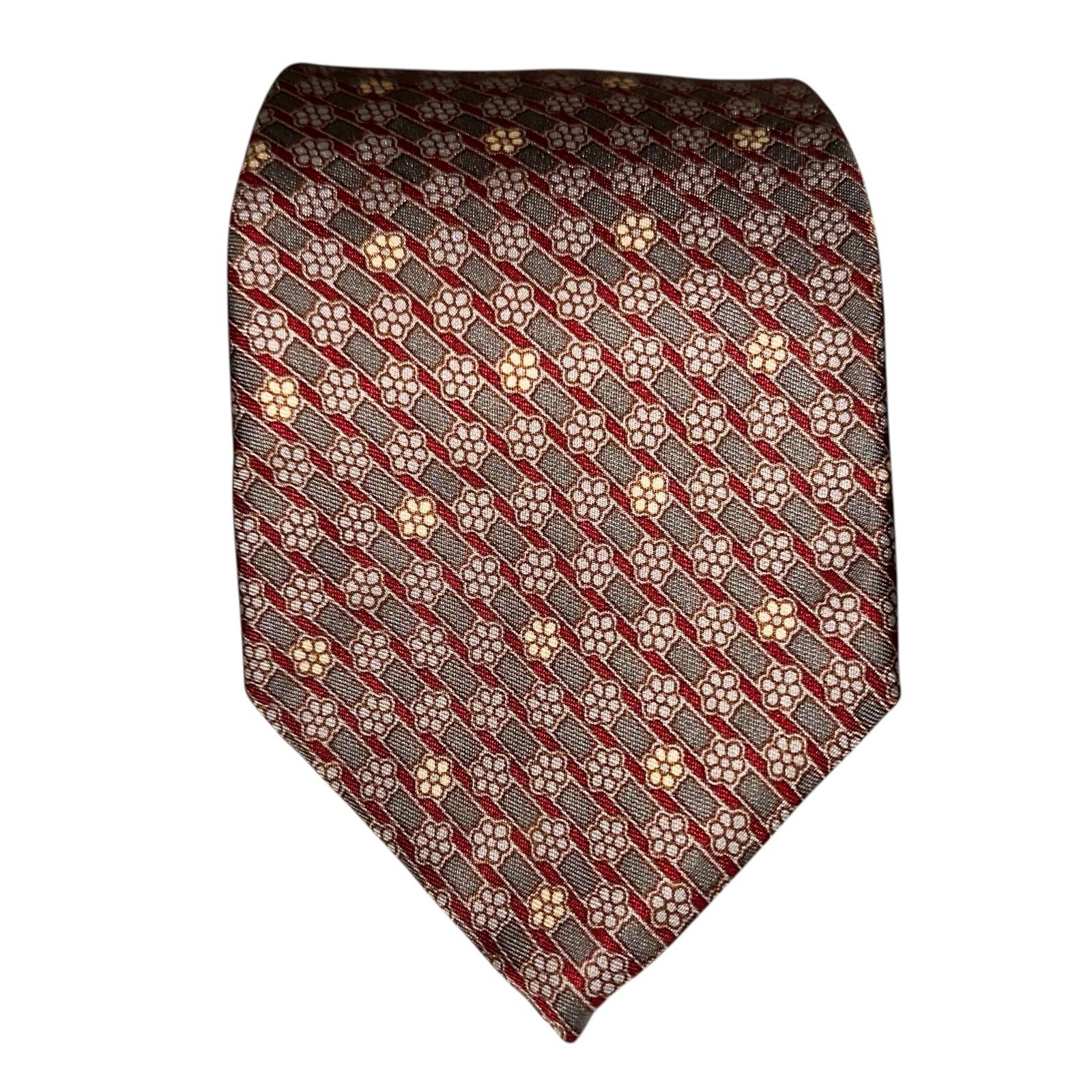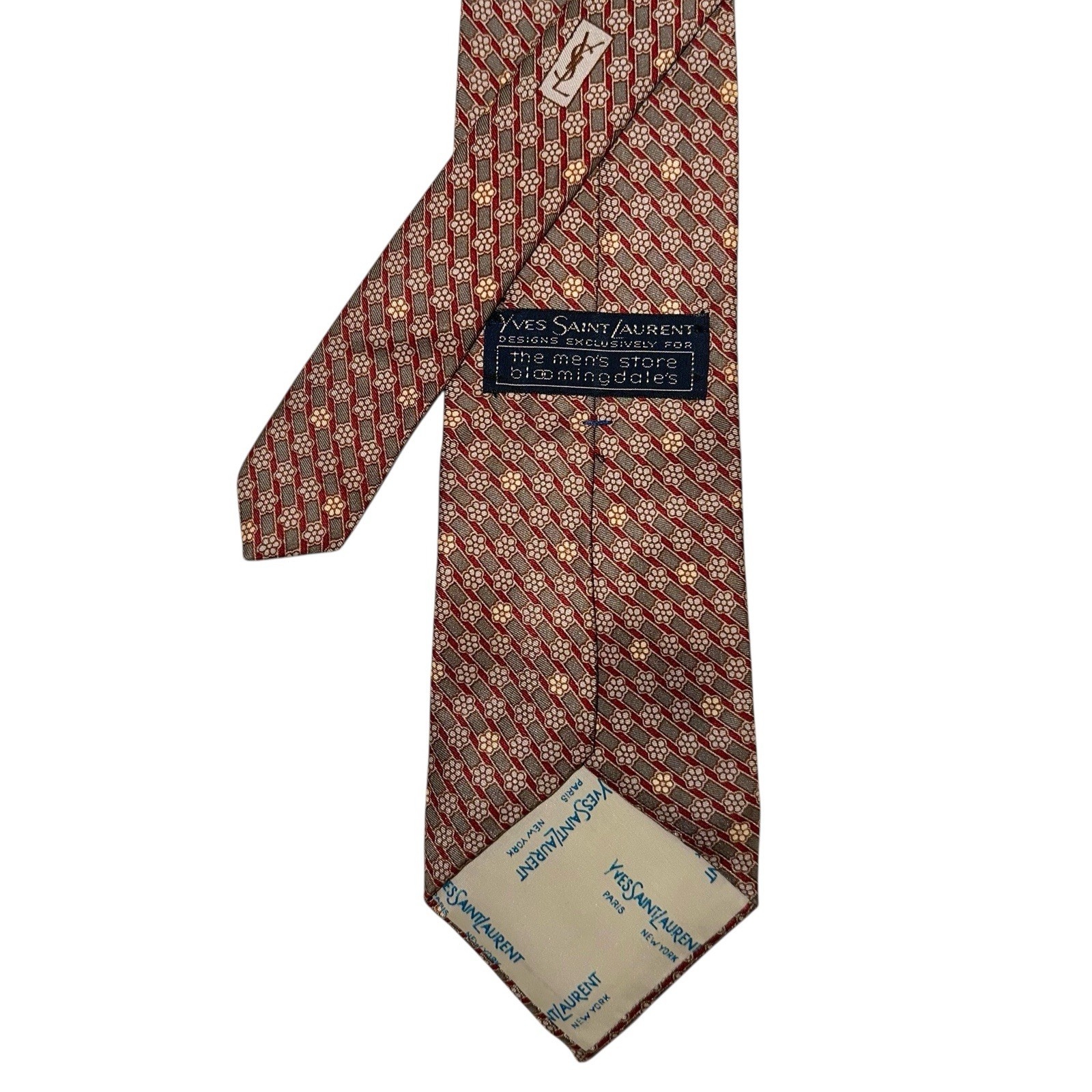 Yves Saint Laurent Mens Tie Silk Burgundy Yellow Floral 57x3.5 Vtg NWOT