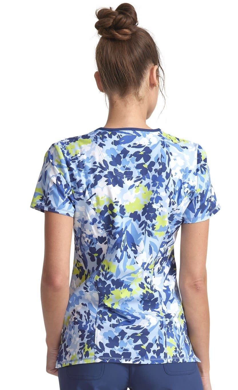Cherokee Style 608 V Neck Detailed Scrub Top in Brushstroke Buds Size XS
