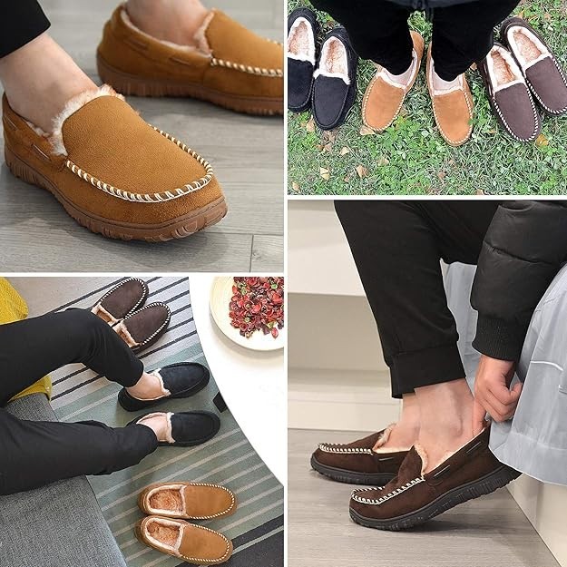 как выглядит Mens Memory Foam Moccasin Slippers Warm Plush Indoor Outdoor House Shoes Gift фото