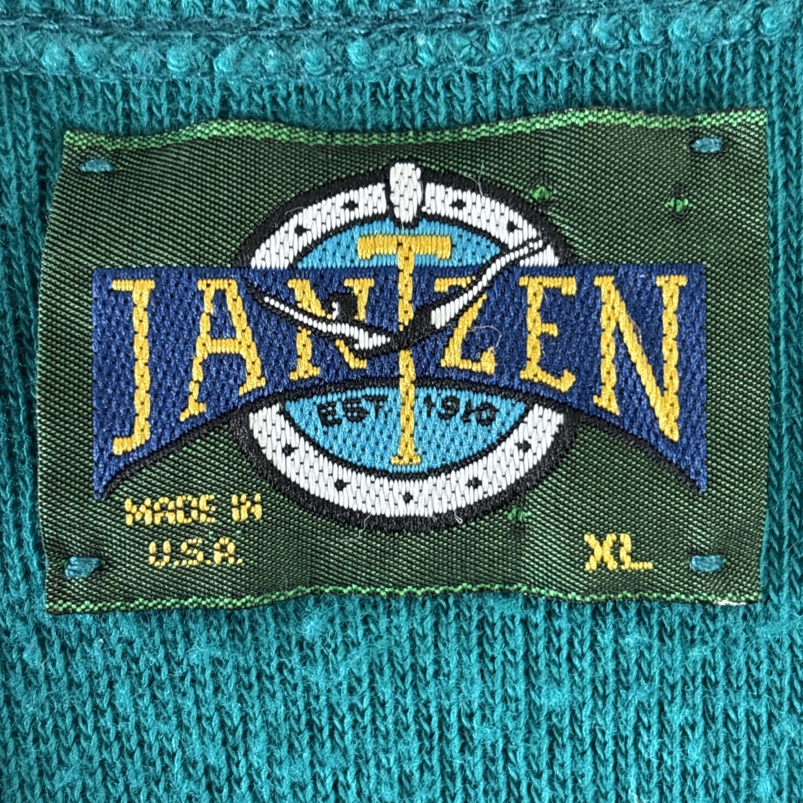 VTG Jantzen Mens V-Neck Sweater Vest Teal XL Knit Golf Grandpacore Made in USA