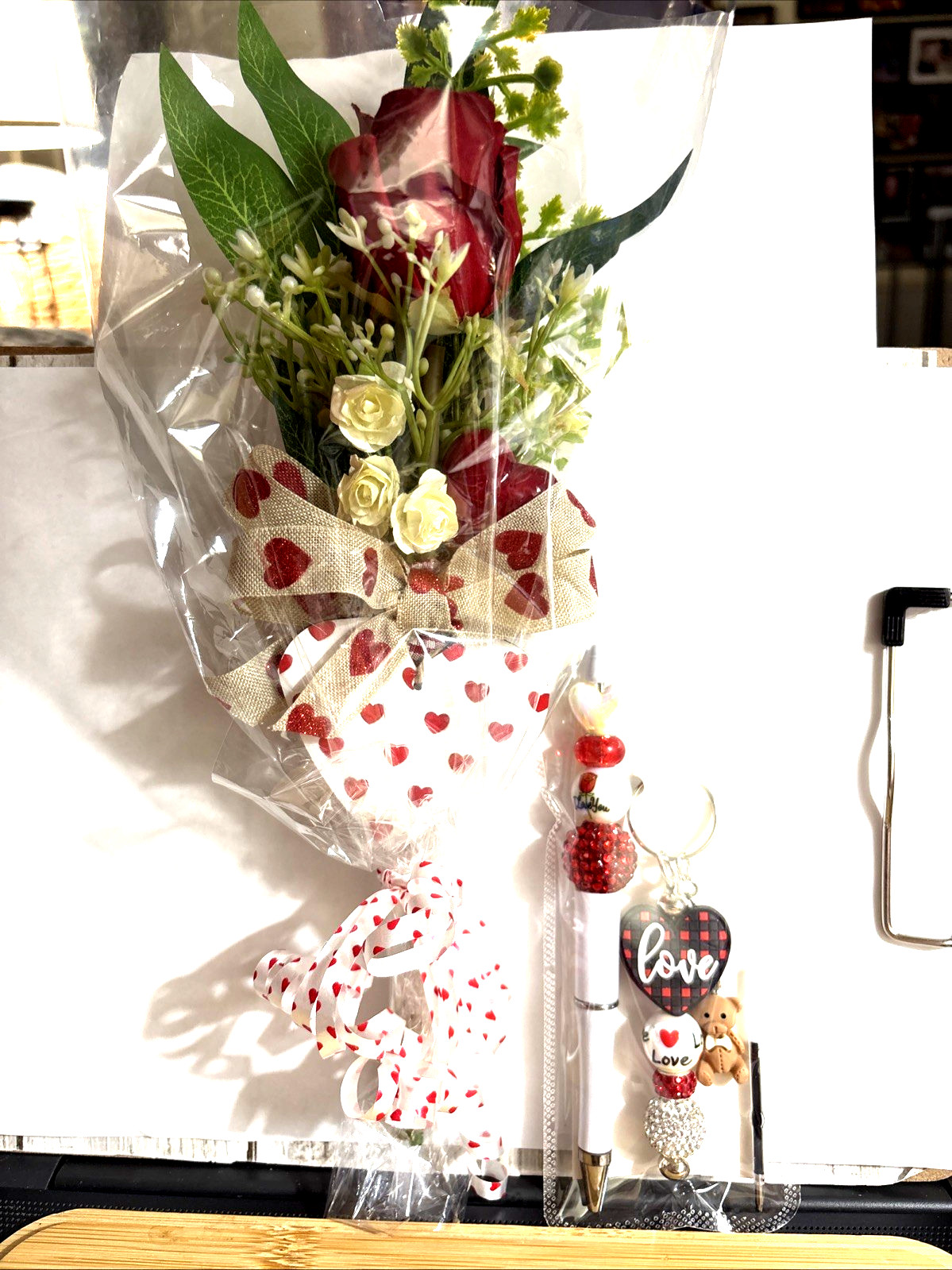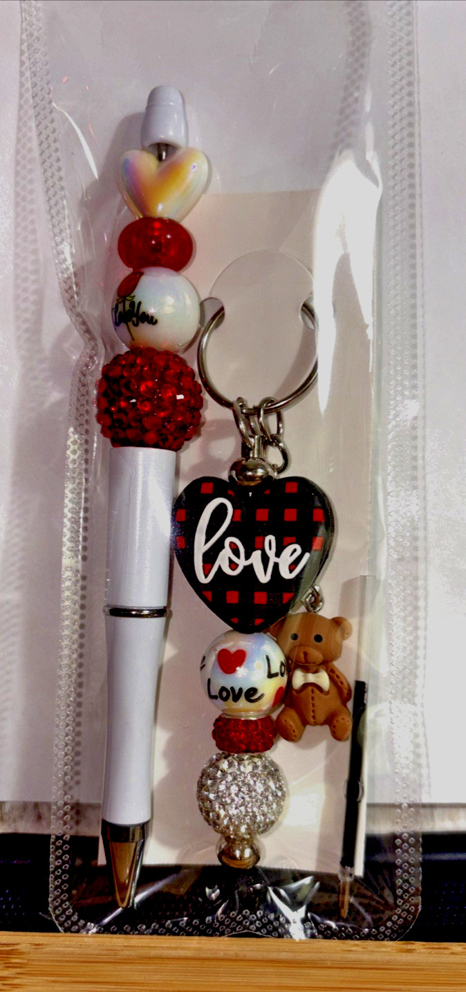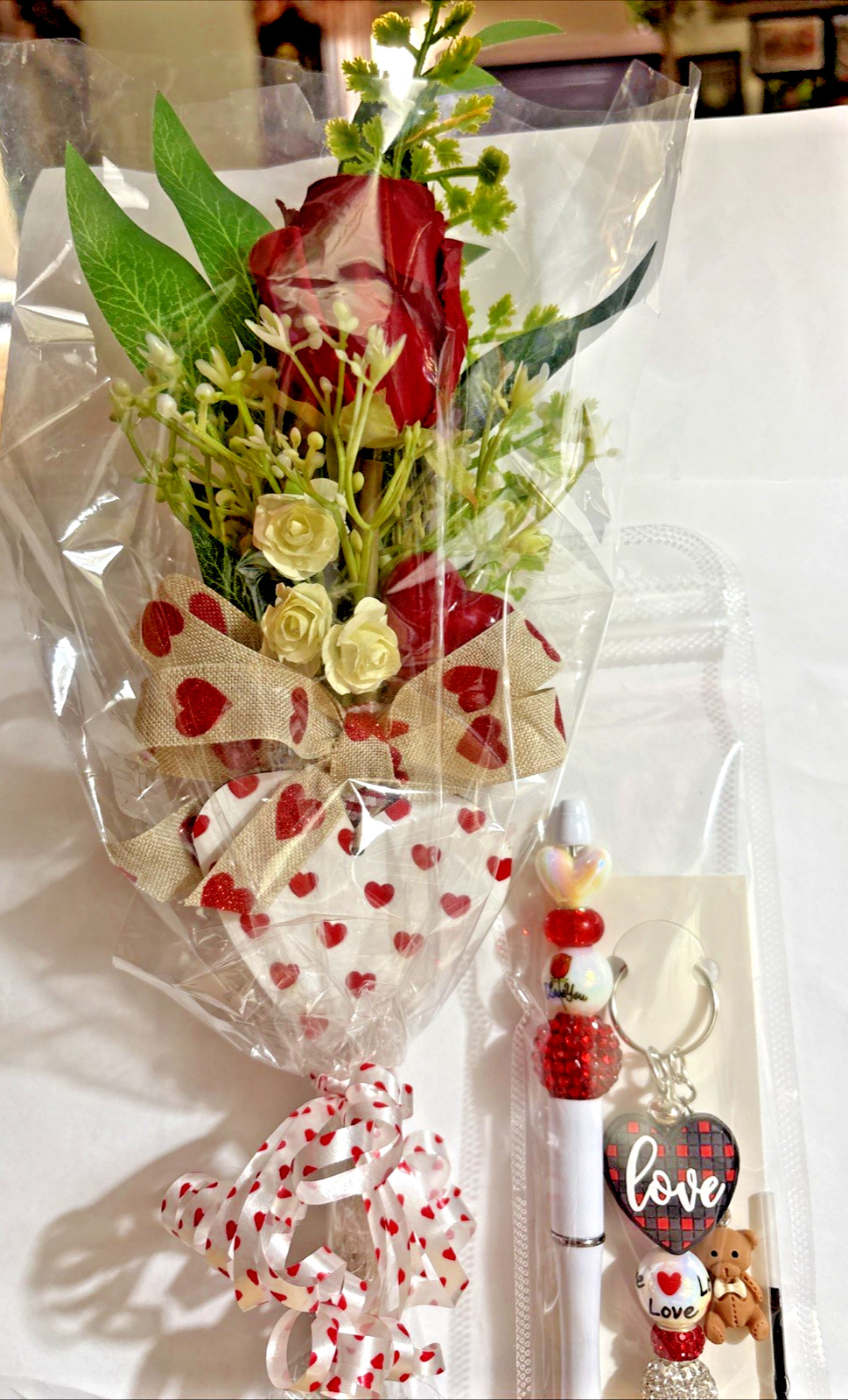 HAND MADE BEAD PEN BEAD KEY CHAIN INK REFILL- Valentine s rose