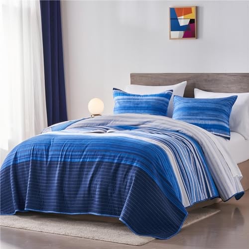 Full/Queen Quilt Bedding Set, White and Patchwork Full/Queen 3-Piece Set Blue