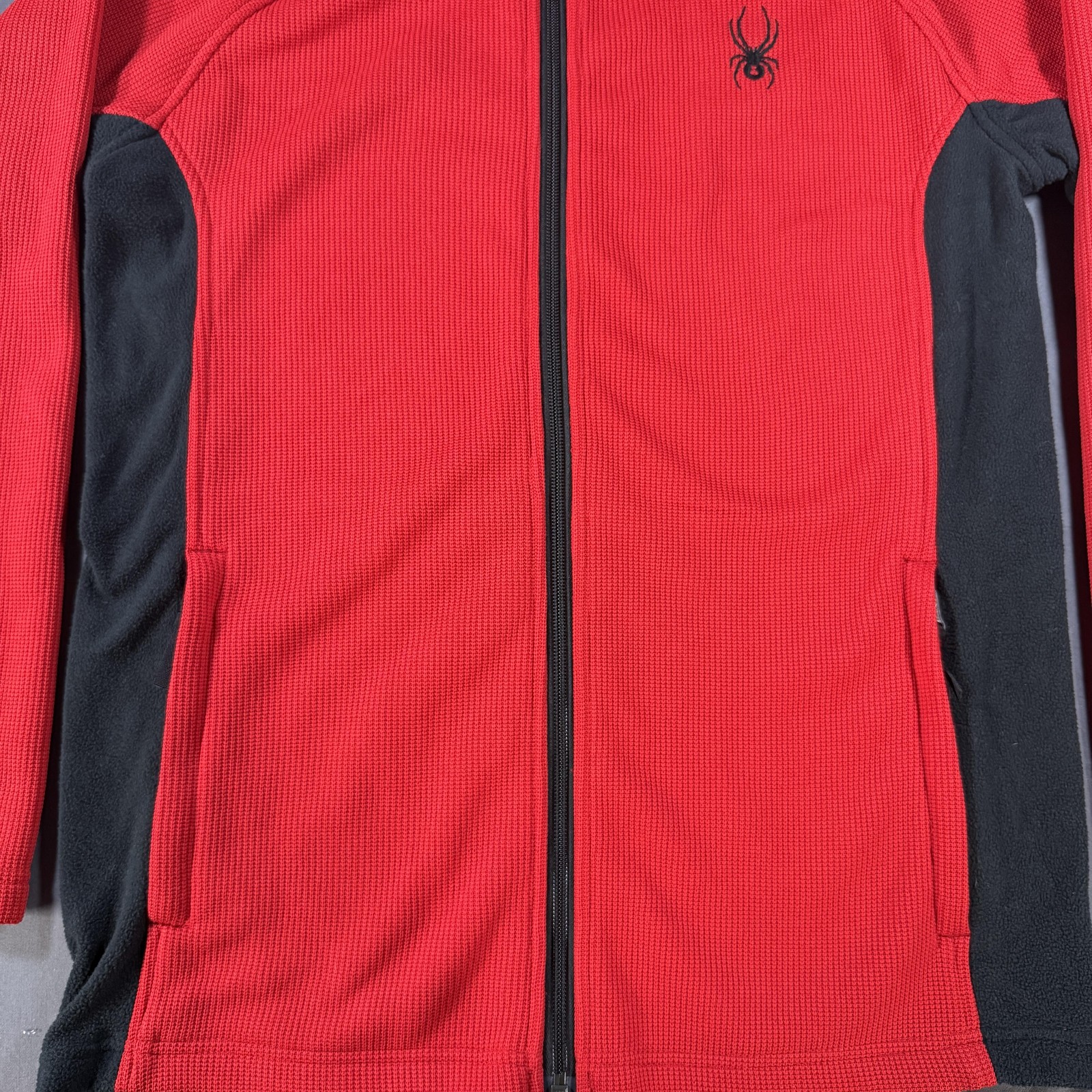Spyder Jacket Unisex Kids XL 18 Red Black Fleece Full Zip Colorblock Ski