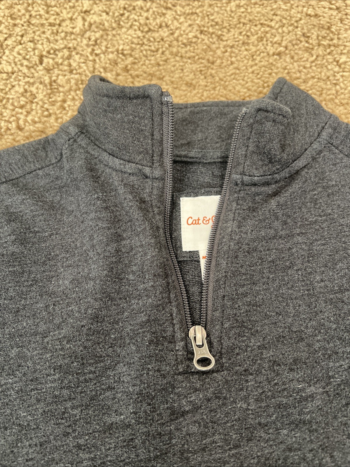 Cat Jack Boys Charcoal Grey Long Sleeve Quarter Zip Terry Sweater Size 8