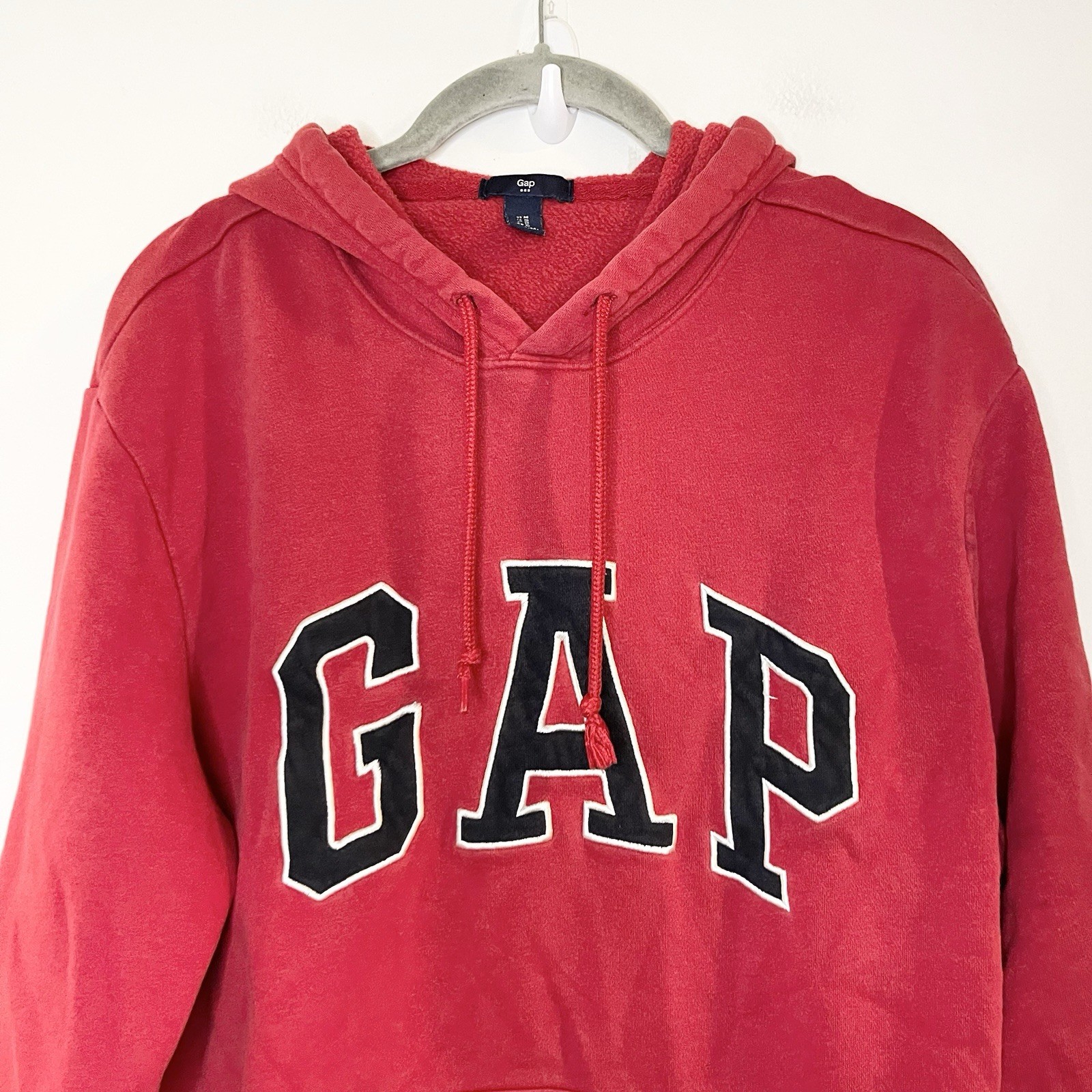 GAP Heritage Logo Hoodie Red Navy Soft Pullover Sweatshirt Y2K Men's sz M