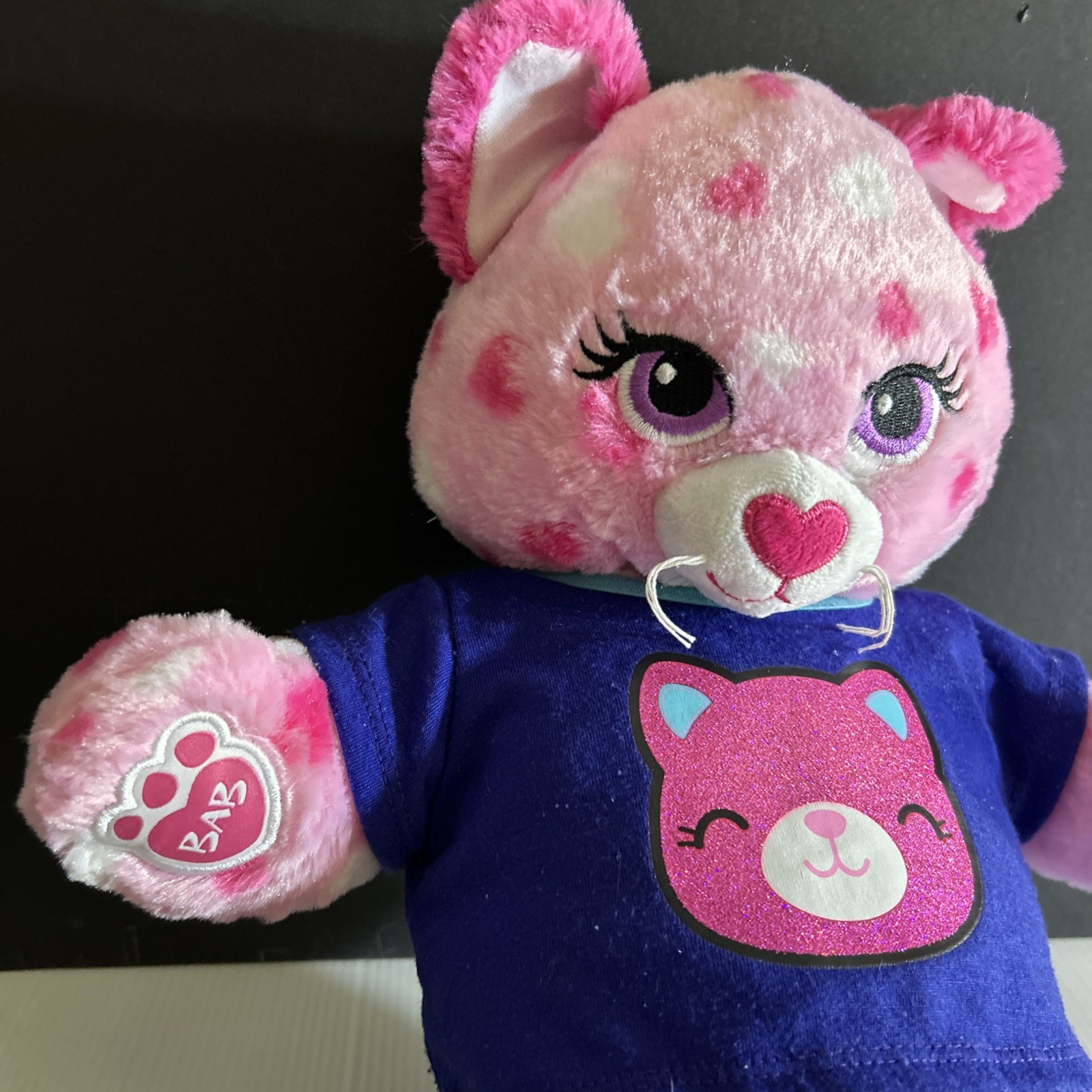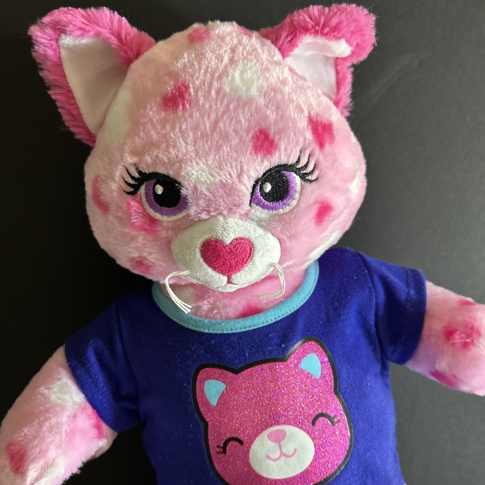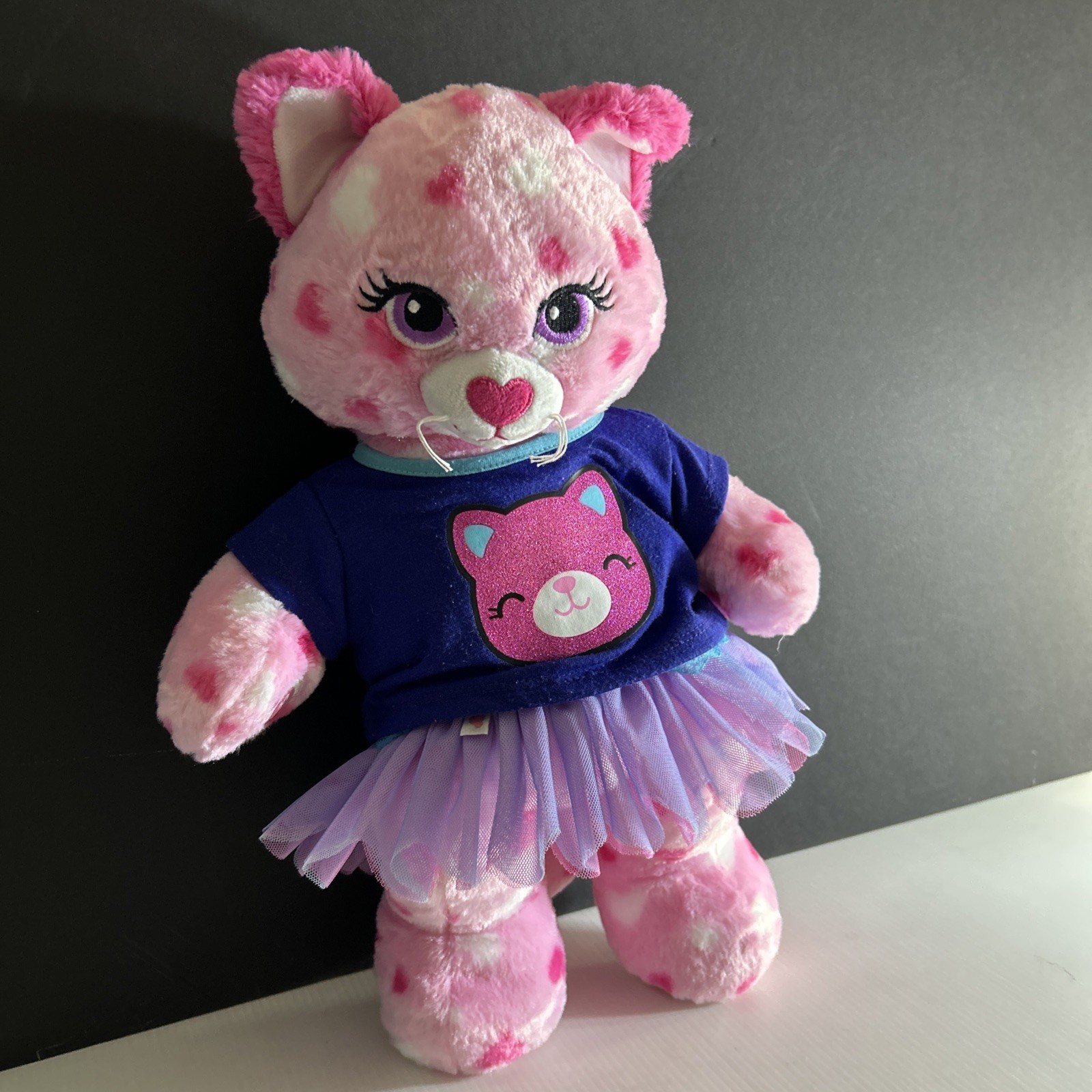 как выглядит Build a Bear BAB Bright Pink Cat Purple Navy Top Mesh Skirt Heart Feet Plush 16" фото