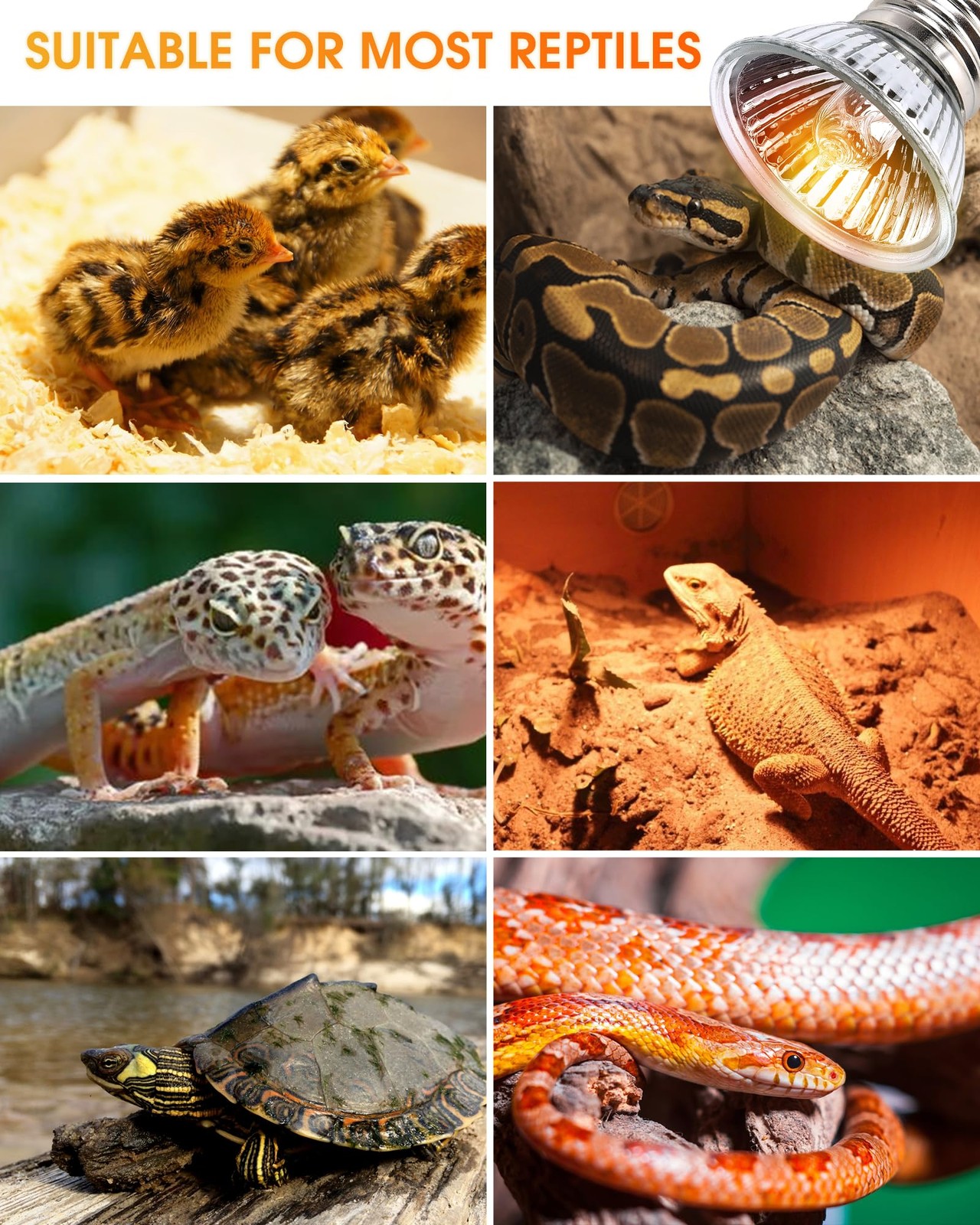 50W UVA UVB Reptile Heat Lamp, 4 Pack Heat Lamp Light Bulbs for Reptiles, Amphib