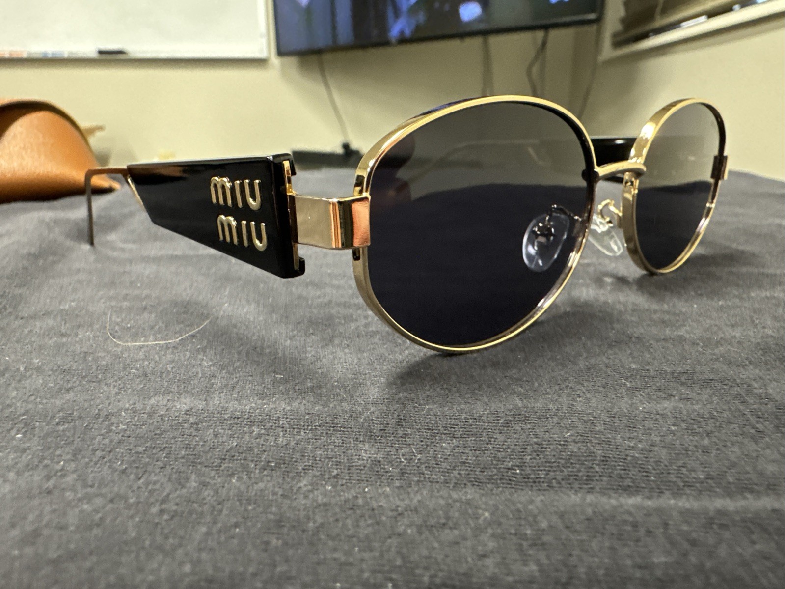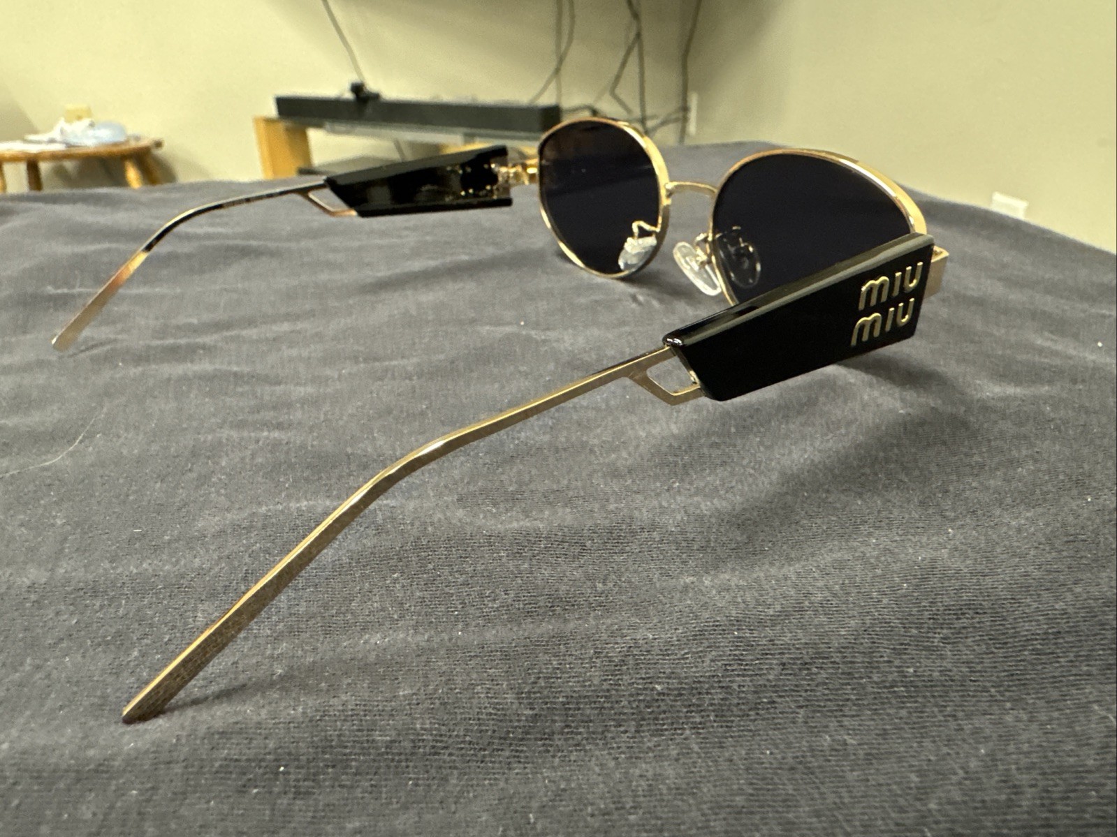 как выглядит MIU MIU WH4058 56-16 137 Gold And Black Sunglasses 361 фото