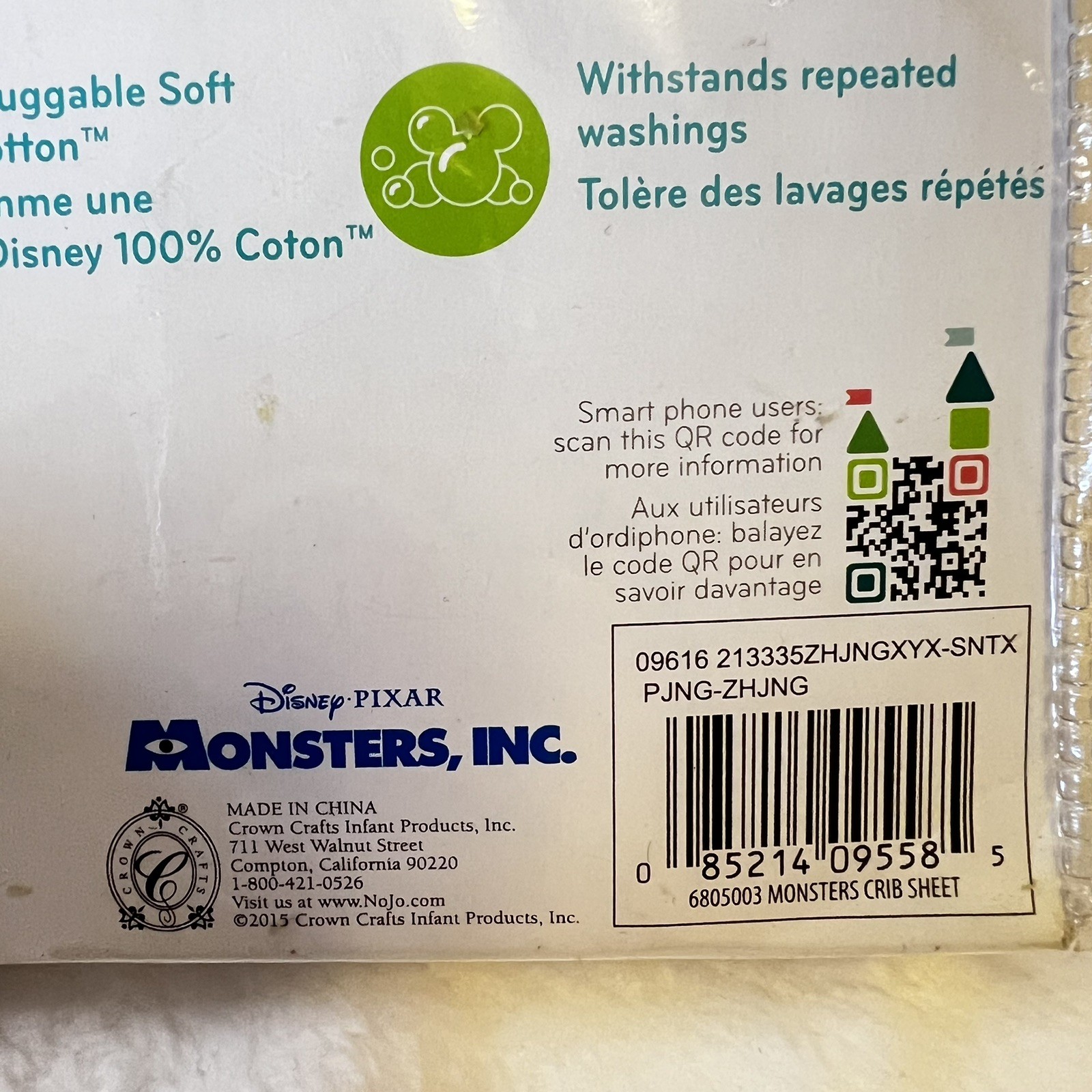 как выглядит Disney Baby Monsters Inc Fitted Crib Sheet 52x28 Sulley Mike Discontinued NEW фото