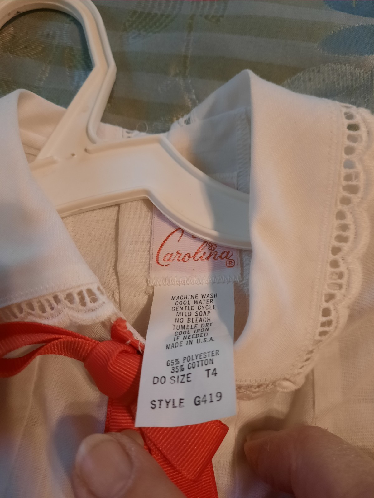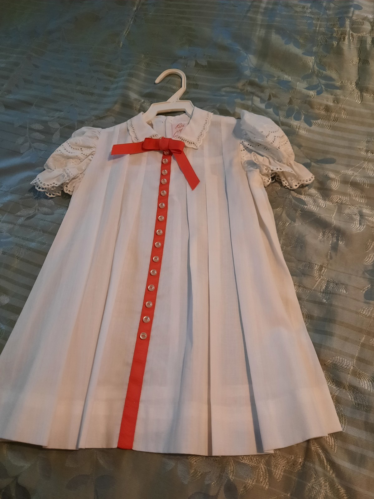 как выглядит Vintage Little Girls Dress with Red Bow. Eyelet Sleeves See Pictures for Size фото