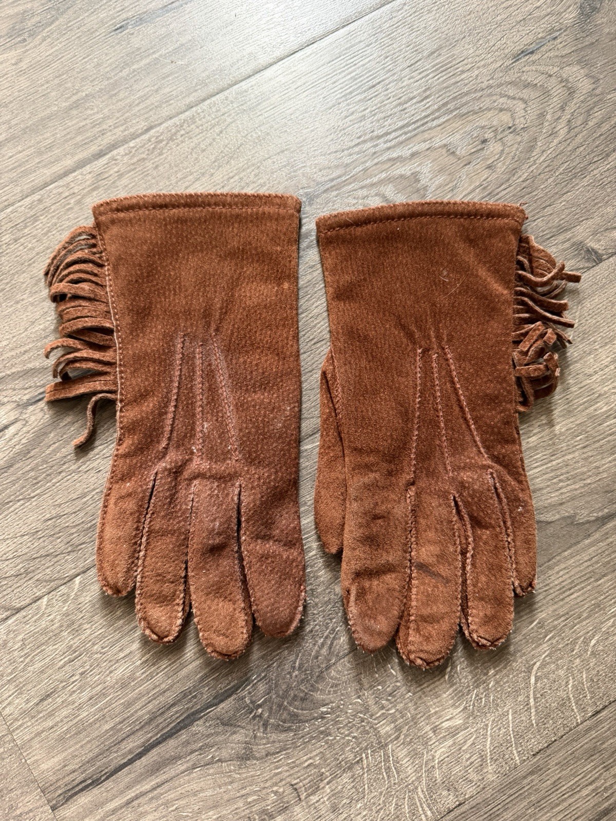Vintage Grandoe Brown W/Fringe Acrylic Size Medium Gloves