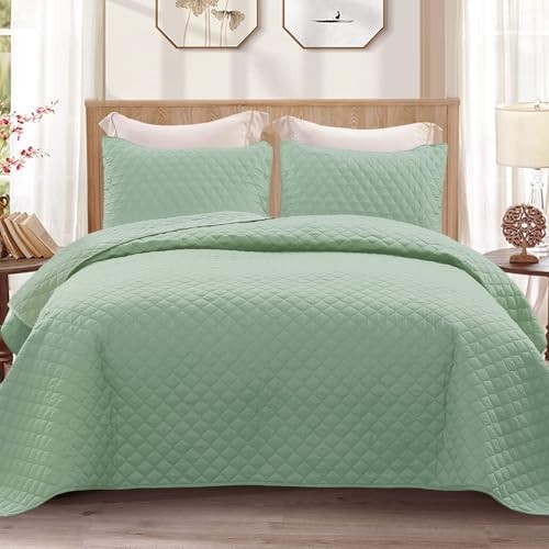Reversible Size Quilt Bedding Set with Pillow California King Light Green