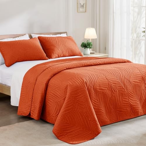 California King Quilt Bedding Set, Lightweight Burnt Orange Quilts Cal