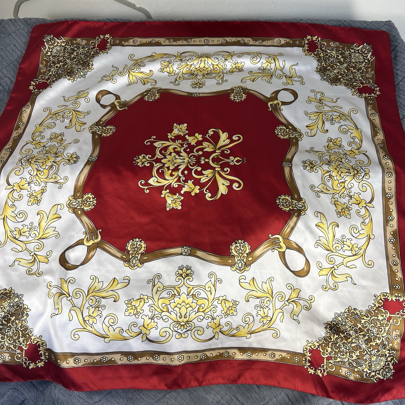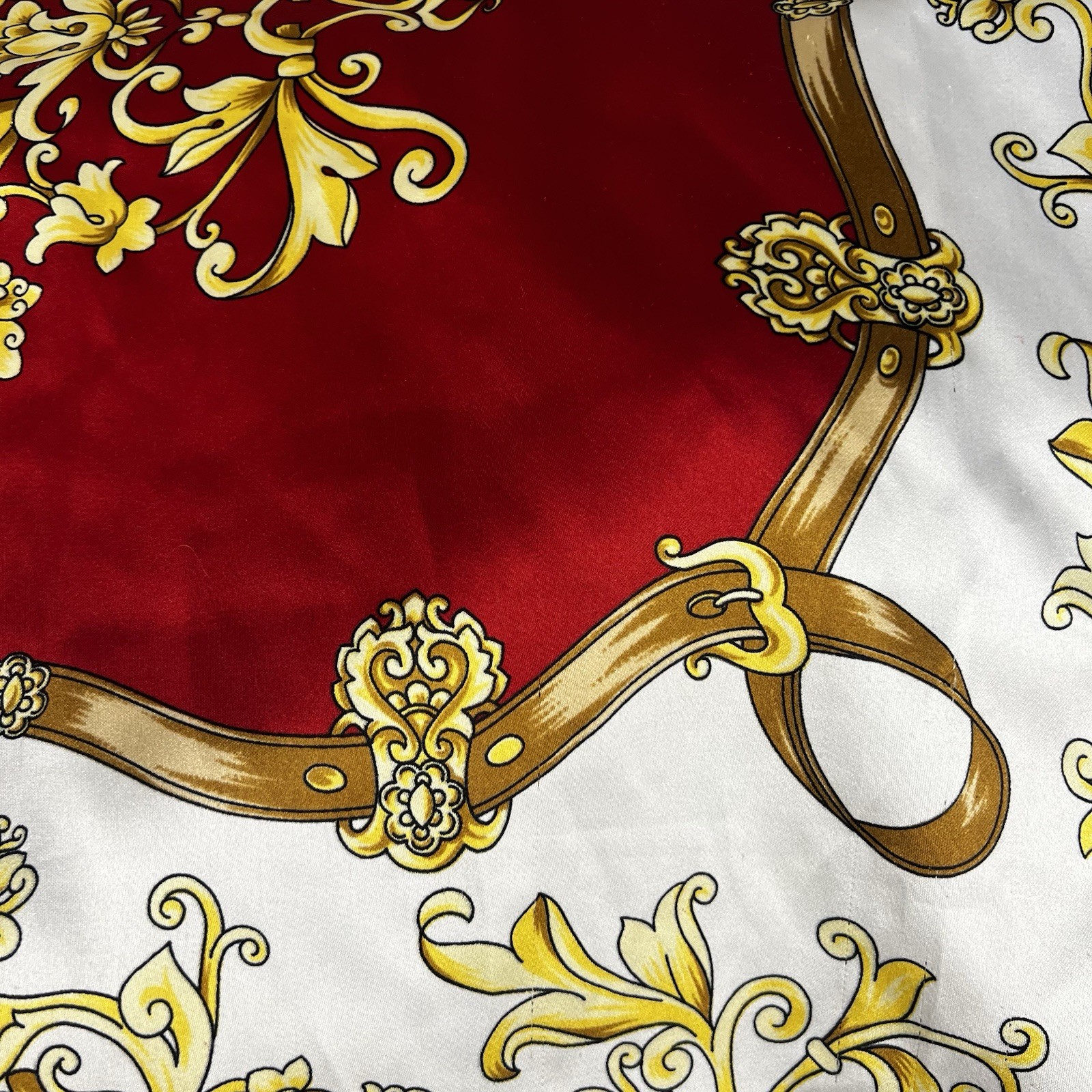 как выглядит Vtg Boroque Art of The Scarf Italy Polyester Chain Link Floral 34 Brown Gold фото