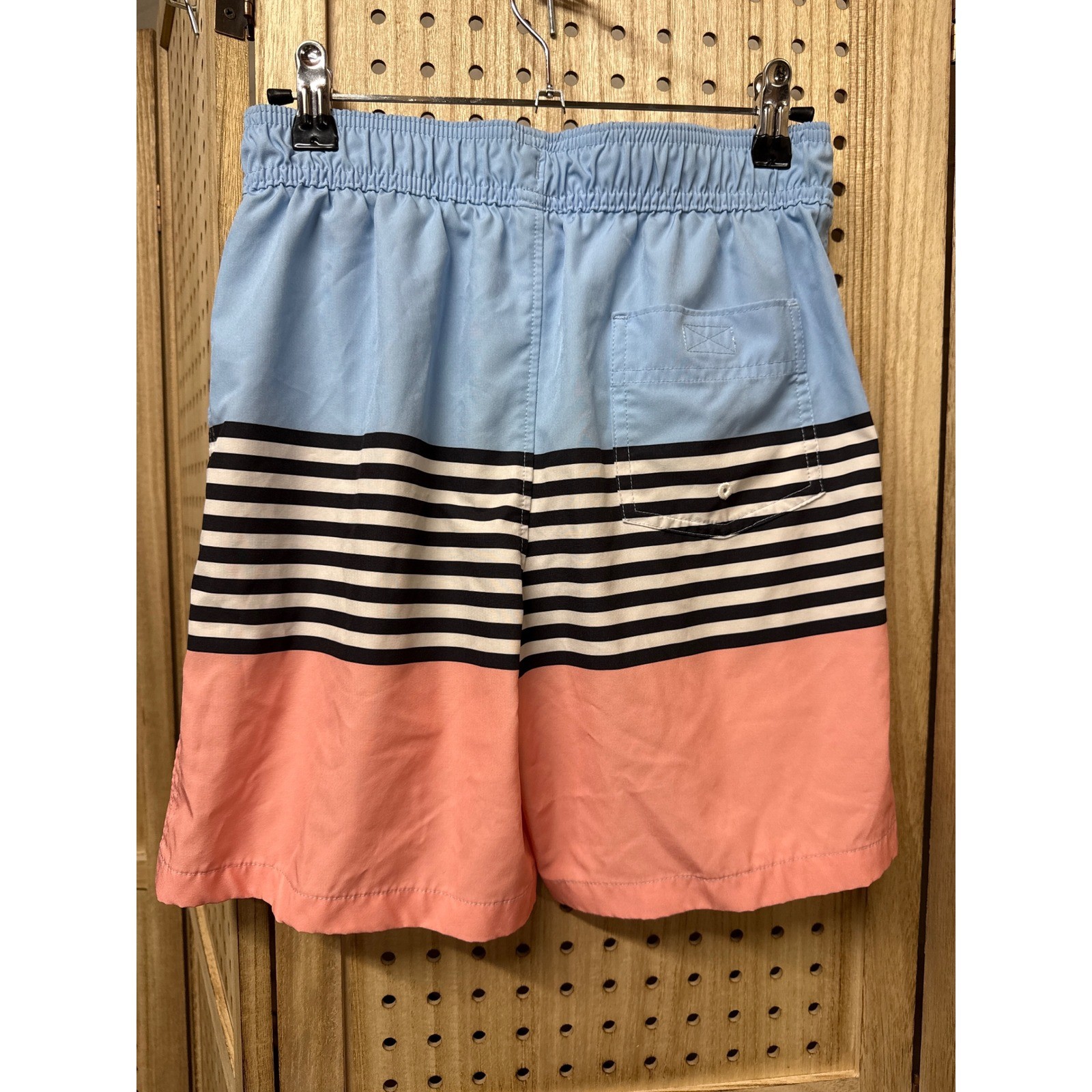 Abercrombie Kids Swim Trunks Boys Size 13 14 Blue Coral Stripe Elastic Waist