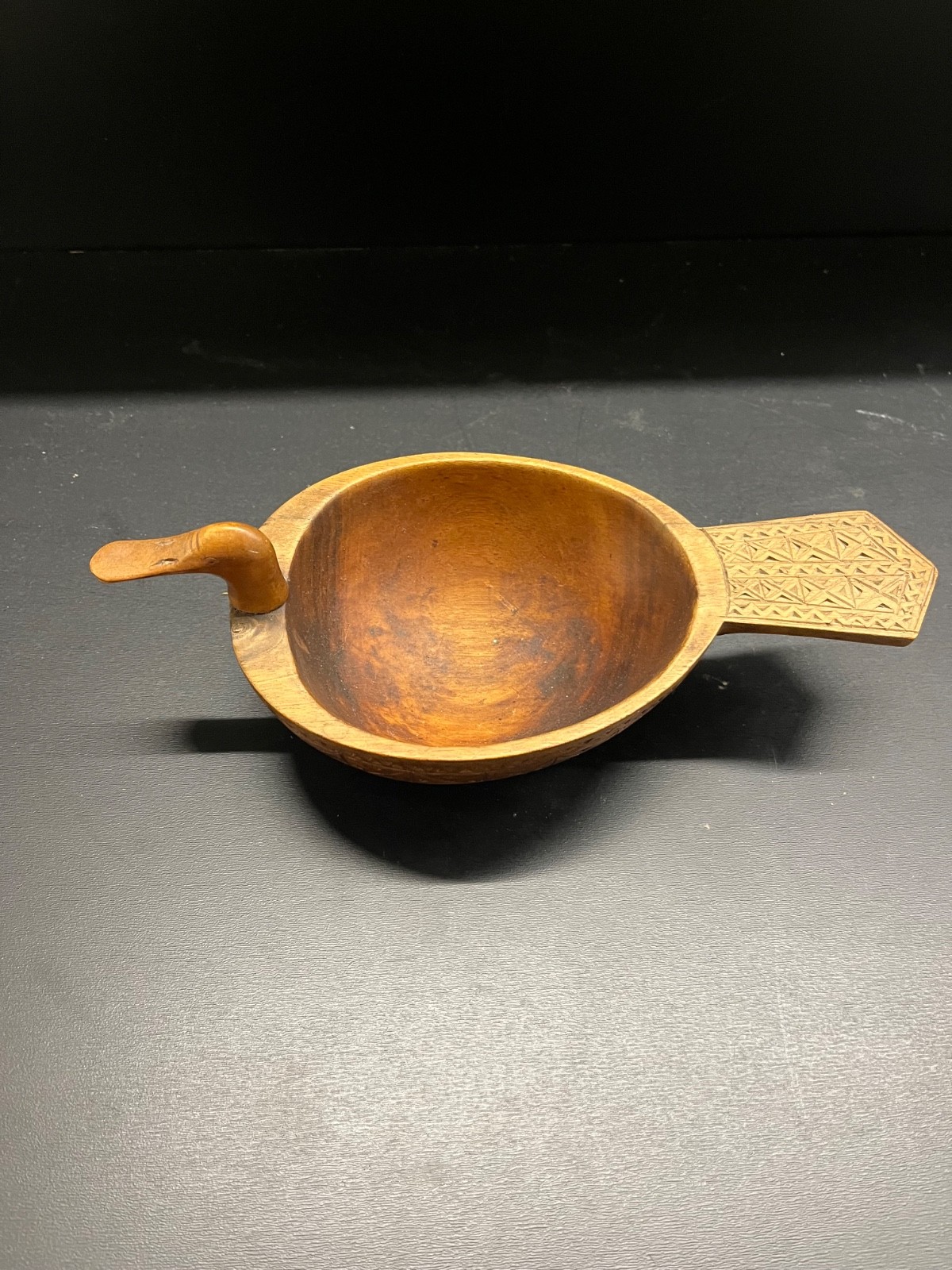 как выглядит Vintage Hand-Carved Wooden Duck Bowl  Folk Art Trinket or Nut Dish фото
