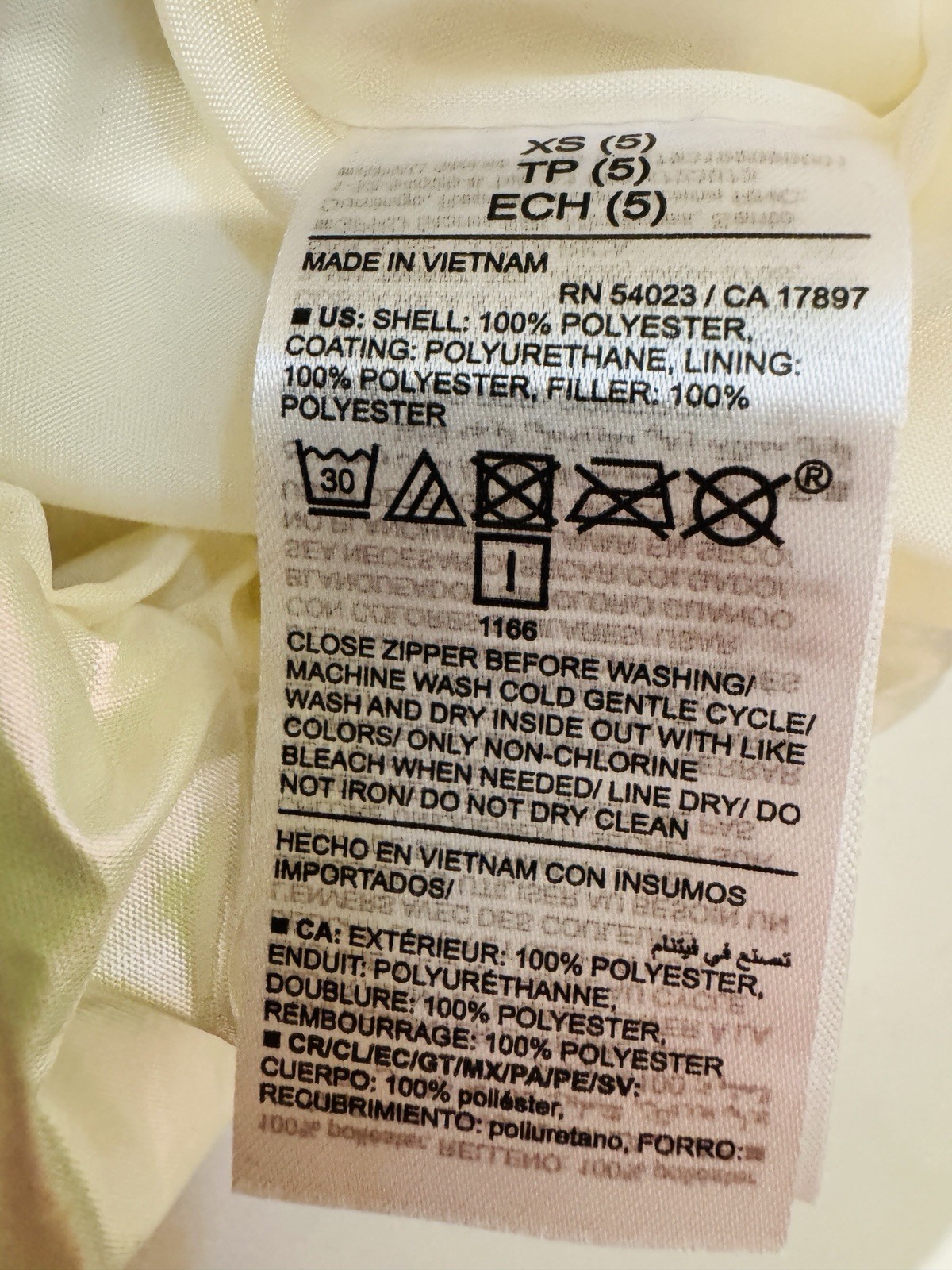 Garment Care: Machine Washable