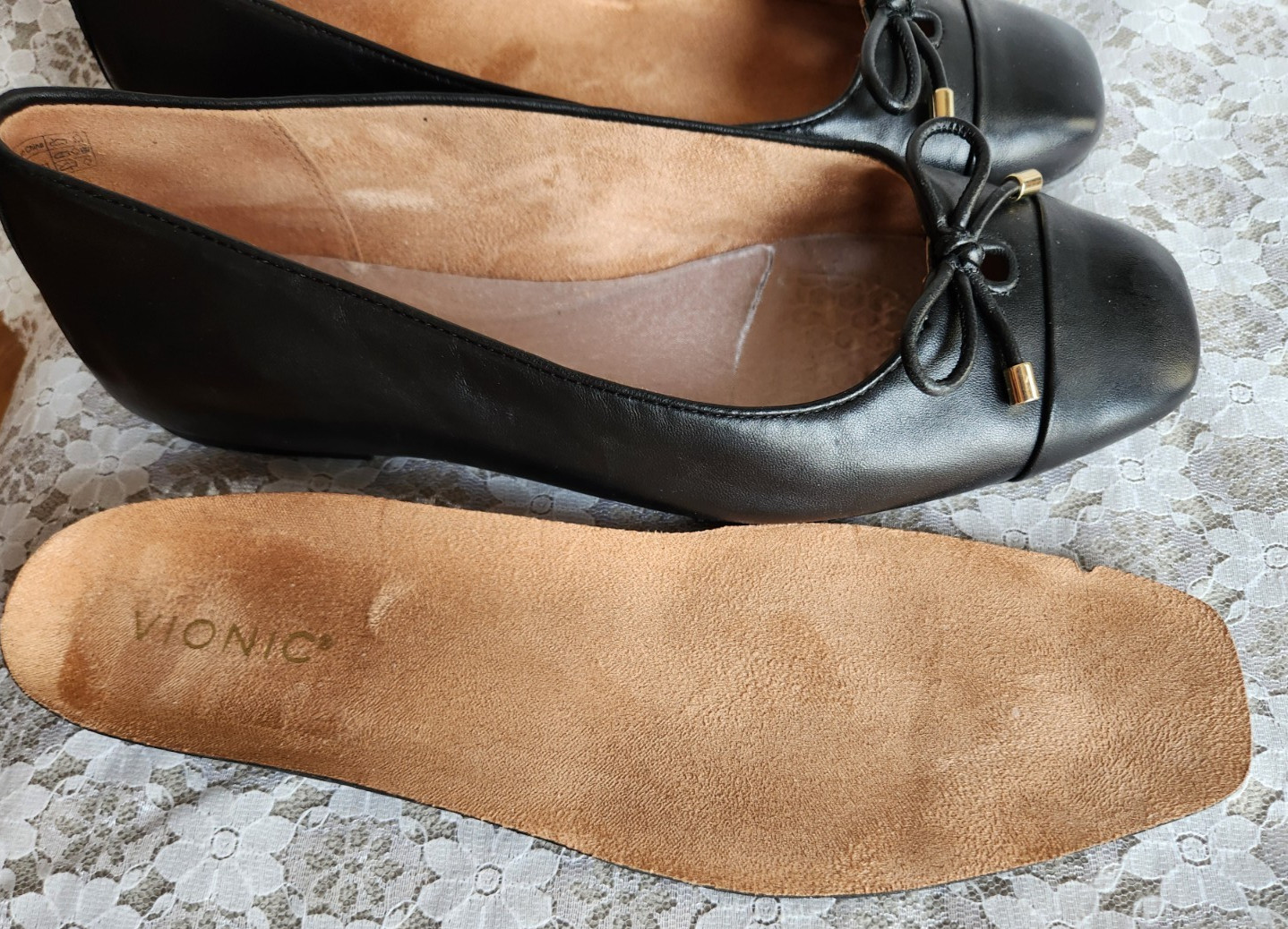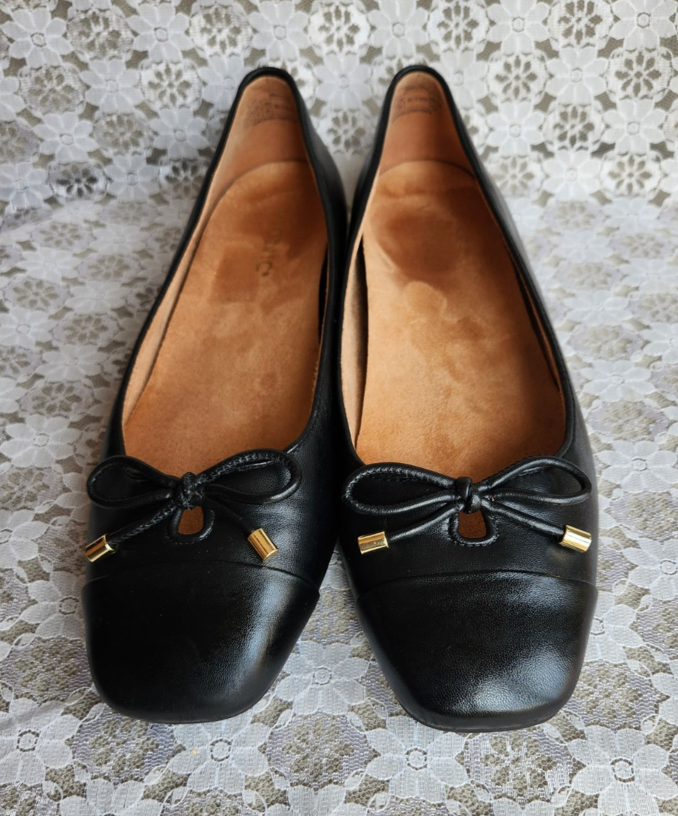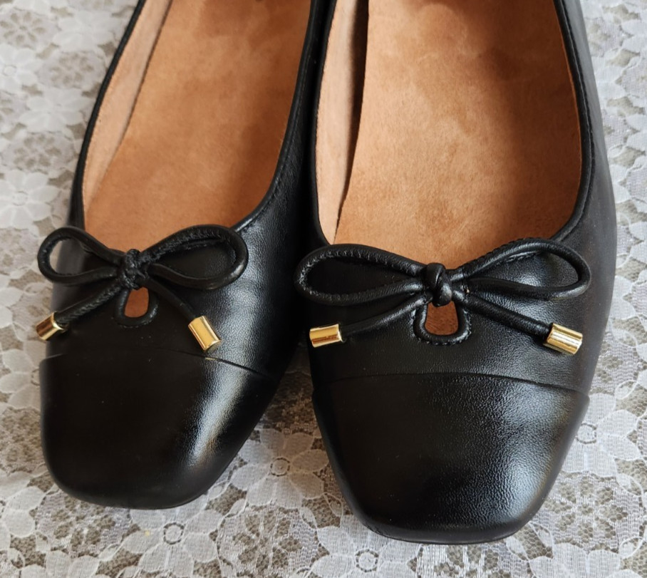 VIONIC BALLET FLAT KLARA Black Leather Square Toe Cap, Bow, Women's 10