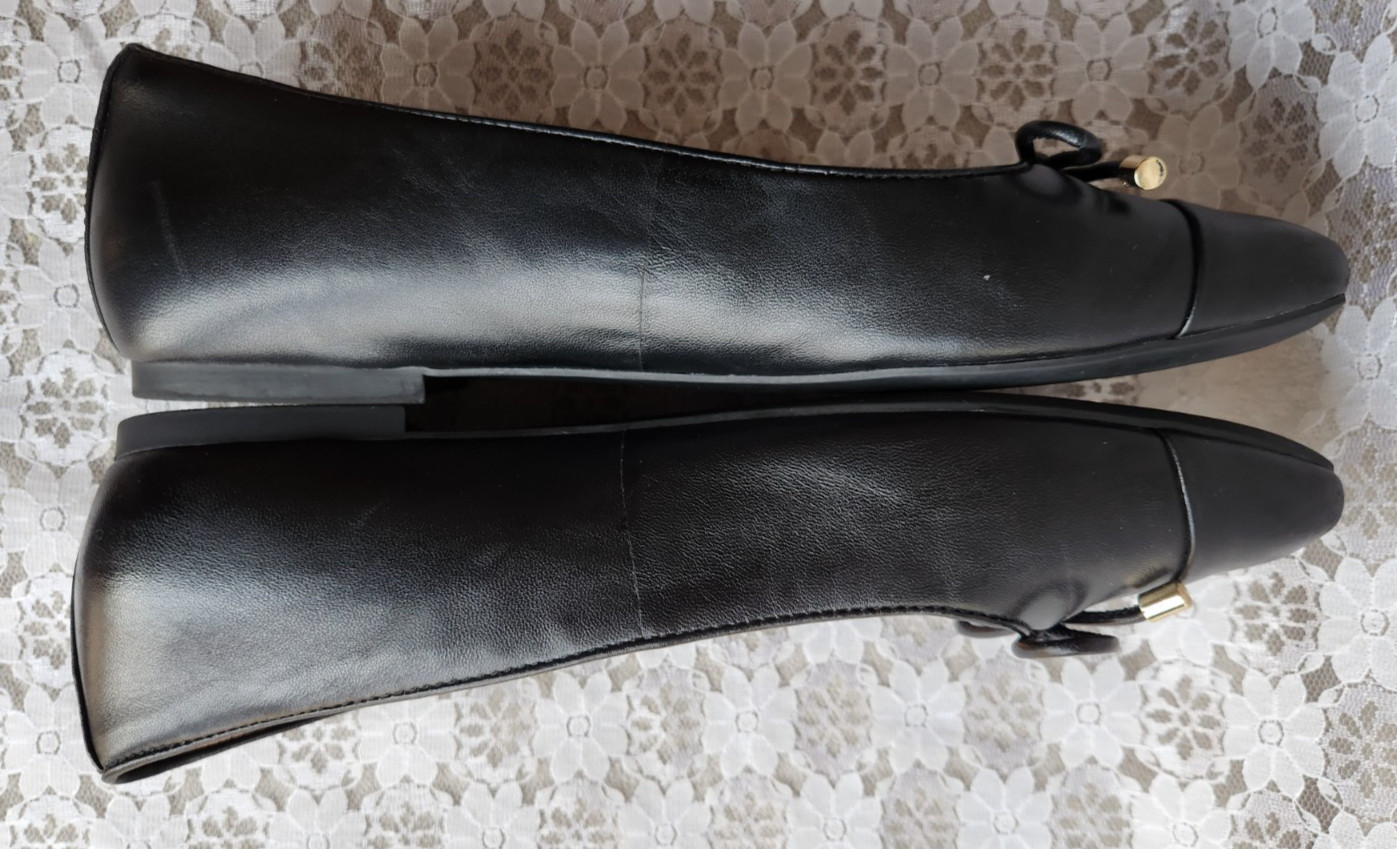 как выглядит VIONIC BALLET FLAT "KLARA" Black Leather Square Toe Cap, Bow, Womens 10 фото