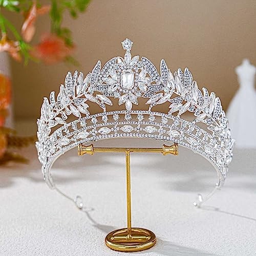 Baroque Queen Crown and Tiaras Sliver Sparkly Rhinestone Wedding Crown Bride