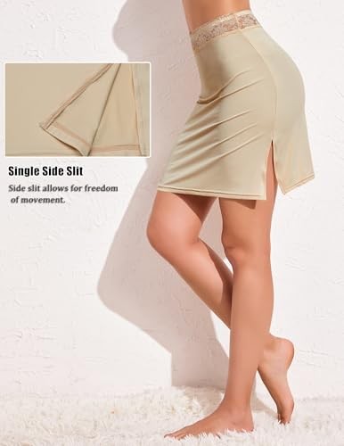Half Slips for Women Underskirt Slip Skirt with Floral Lace Large Dark Nude