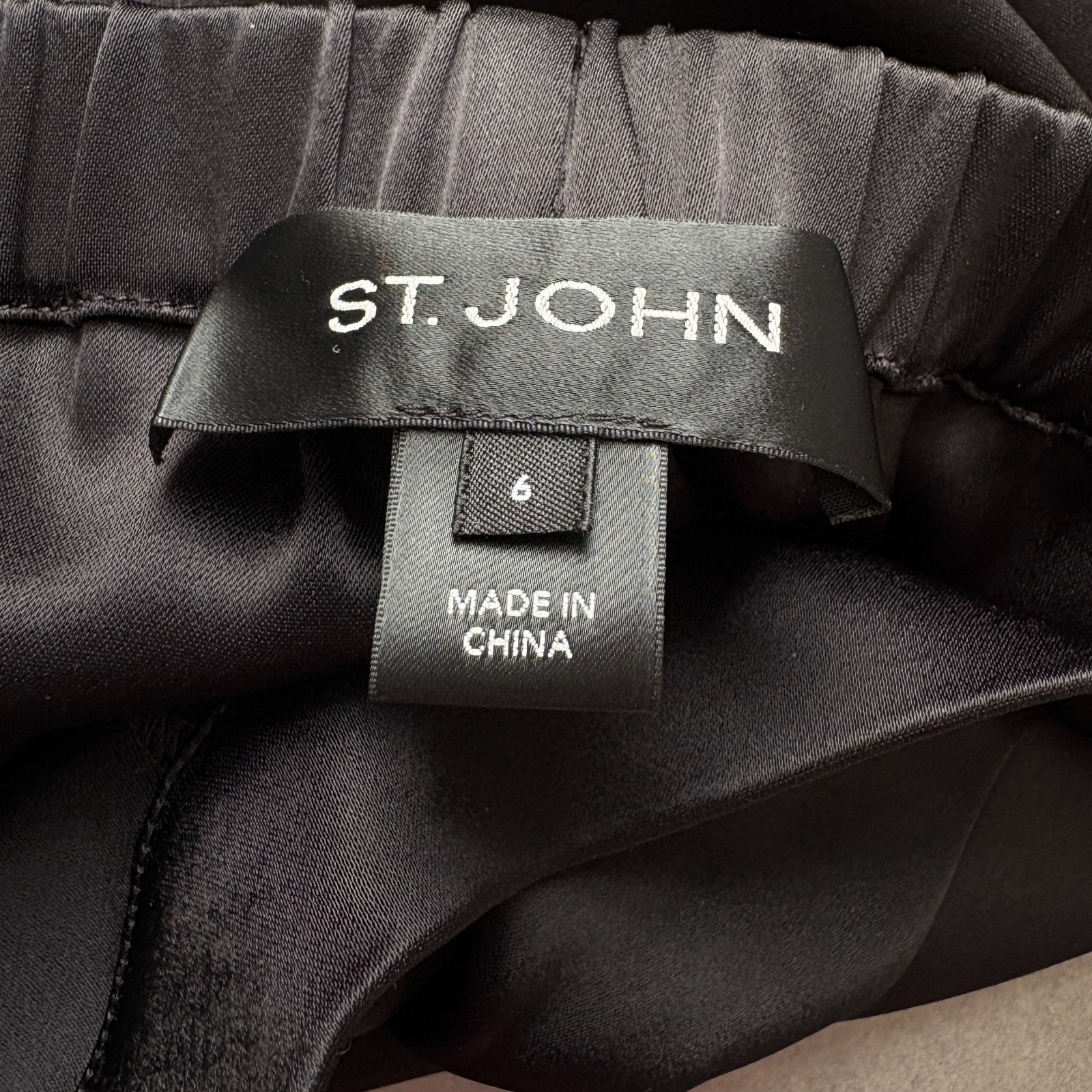 St John Satin Pants Trousers Women Size 6 Black High Rise Wide Leg