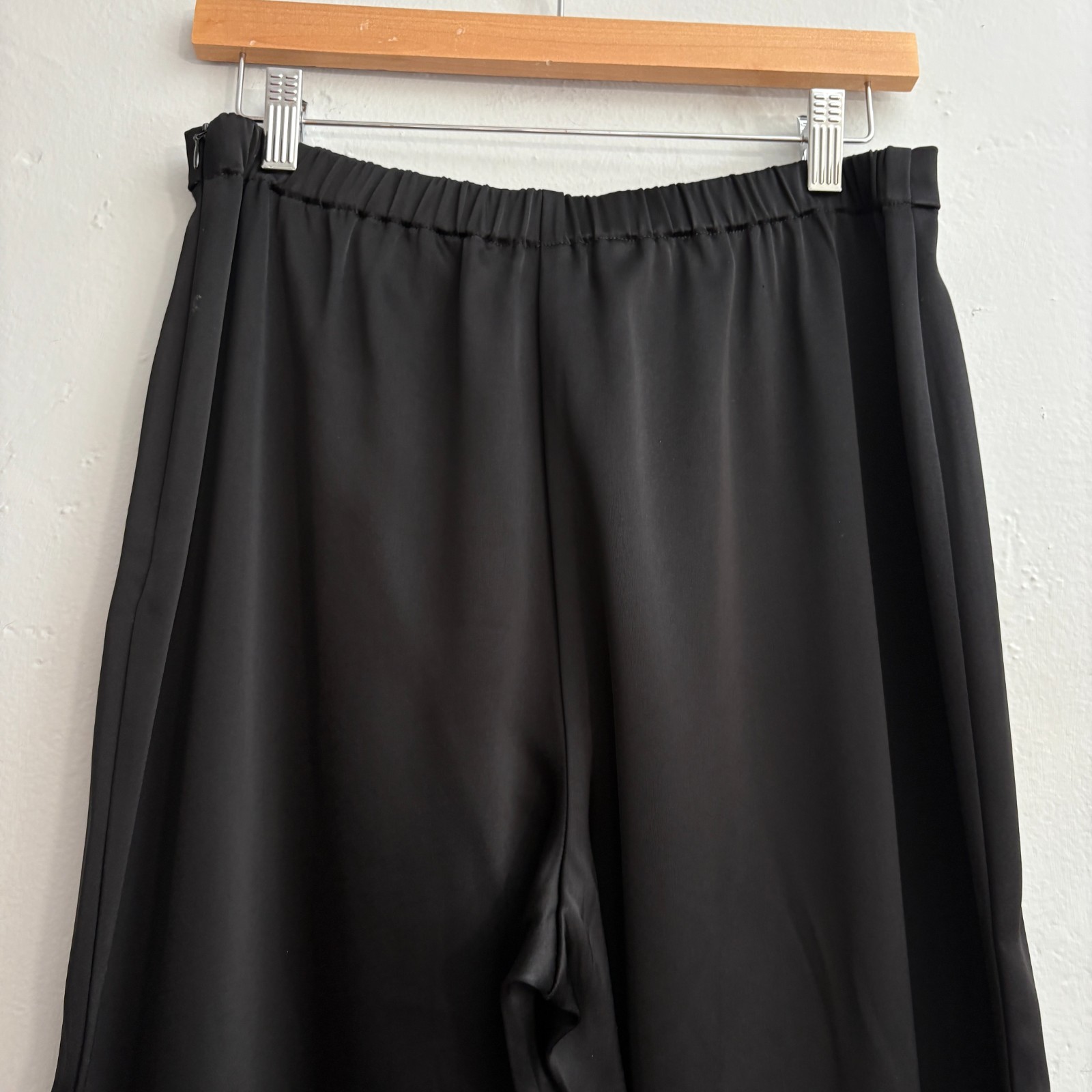 как выглядит St John Satin Pants Trousers Women Size 6 Black High Rise Wide Leg фото