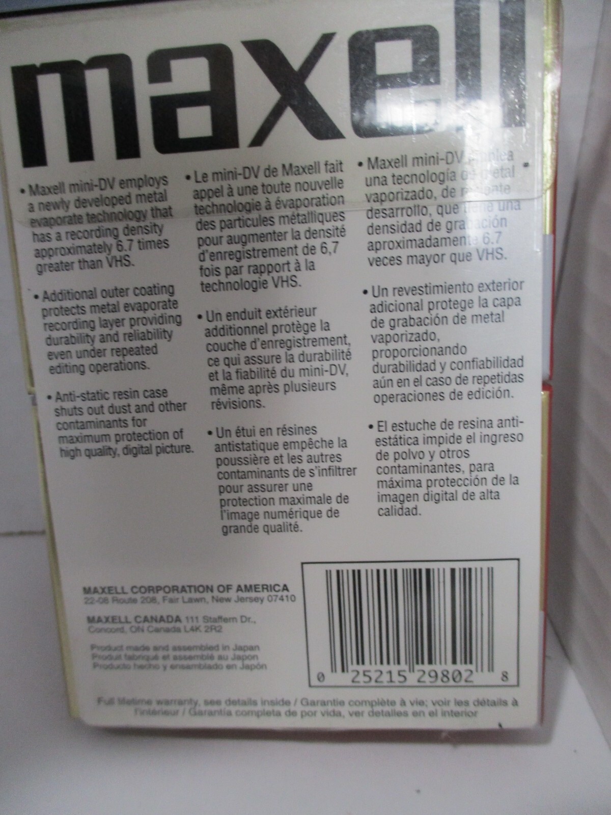 Maxell Mini DV Digital Video Cassettes 60 minutes Sealed Pack of 2