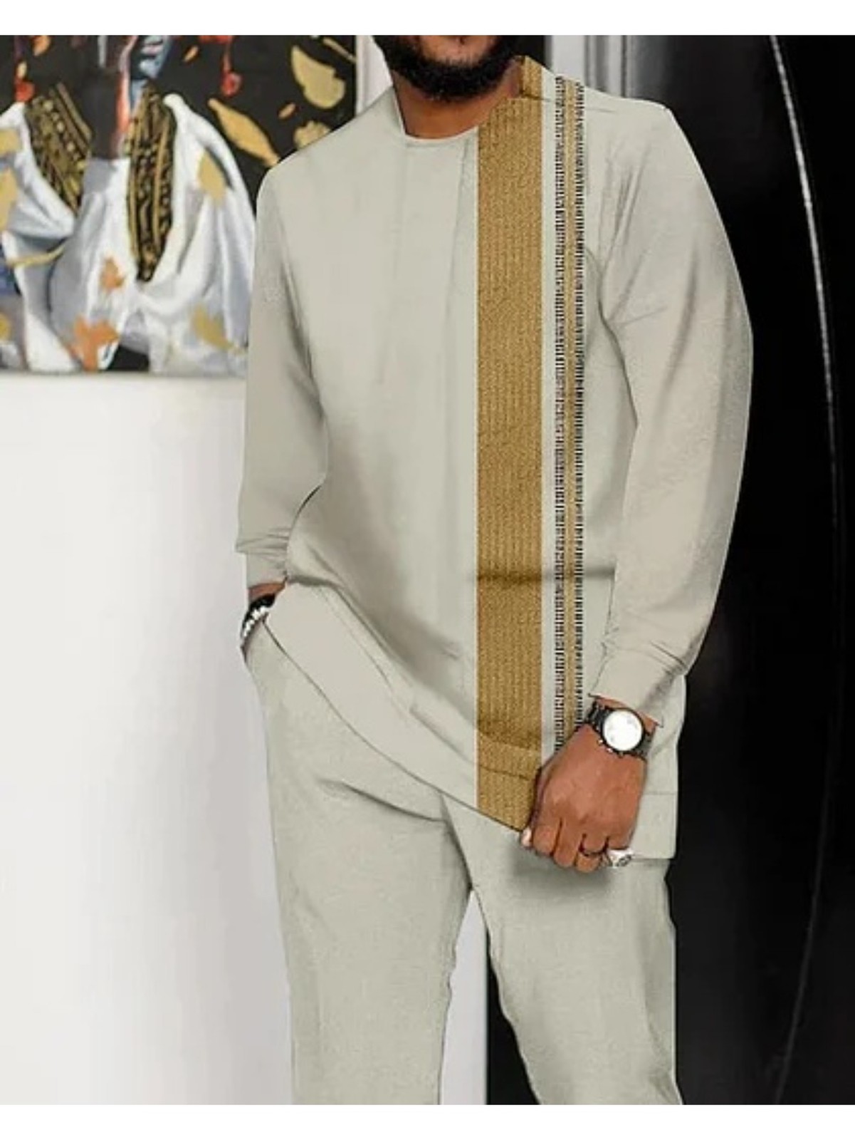 Men'S Ethnic African-Inspired 2pcs Set - XL-6XL Large Size Long Sleeve Pants w