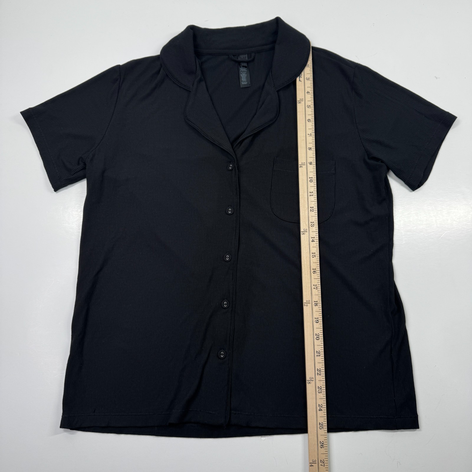 Skims Sleep Pajama Set Button Down Top and Shorts Onyx Black Ribbed Medium