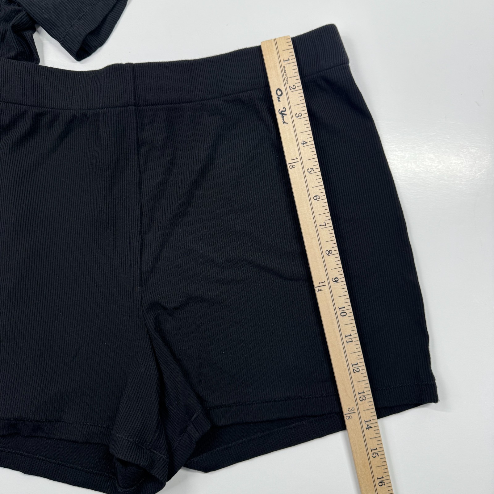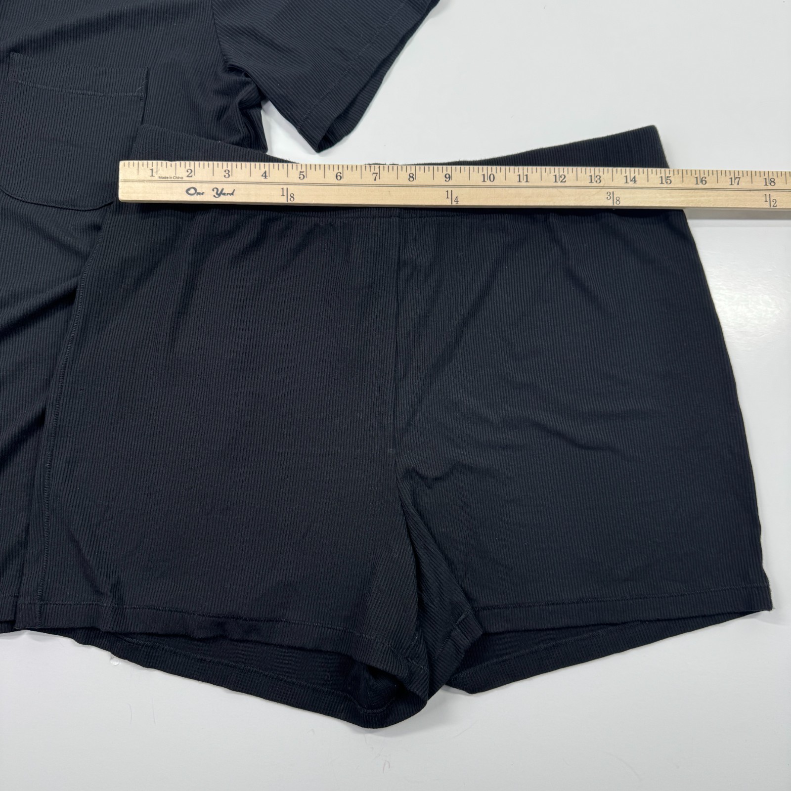как выглядит Skims Sleep Pajama Set Button Down Top and Shorts Onyx Black Ribbed Medium фото