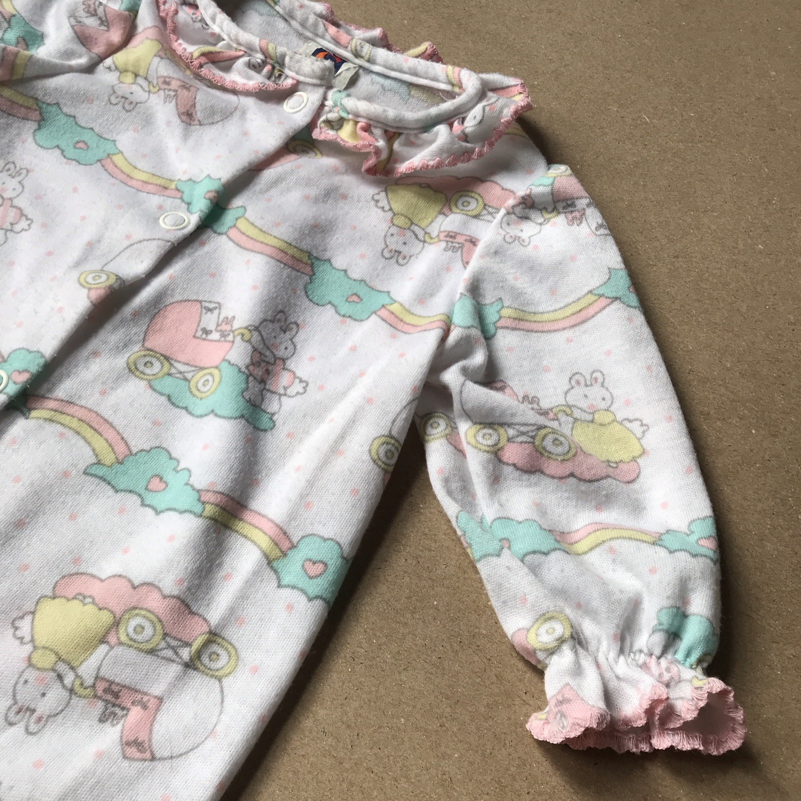 Vintage Carter's Baby Footed Pajamas Size 3-6 Mo Bunny Carriage Rainbows RARE
