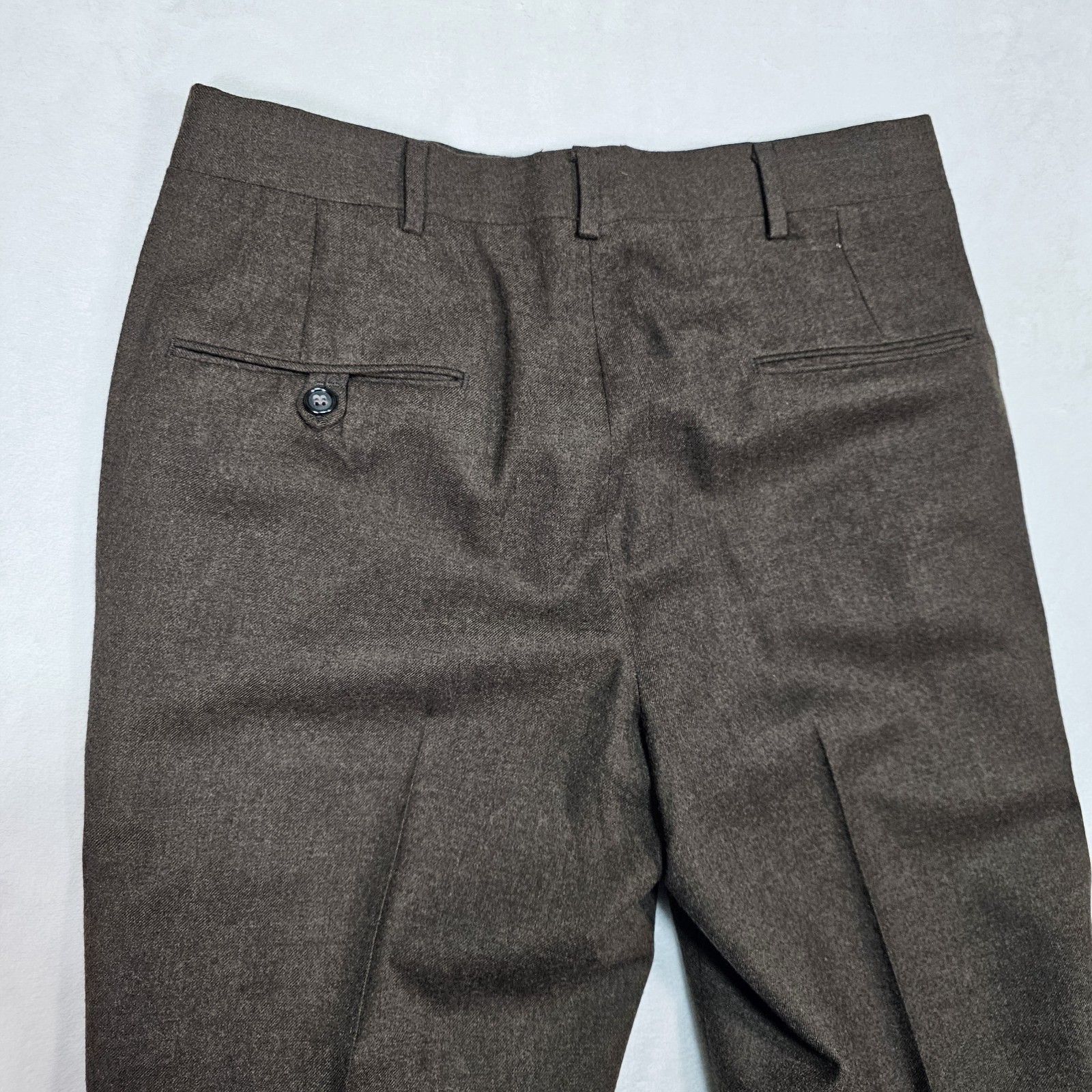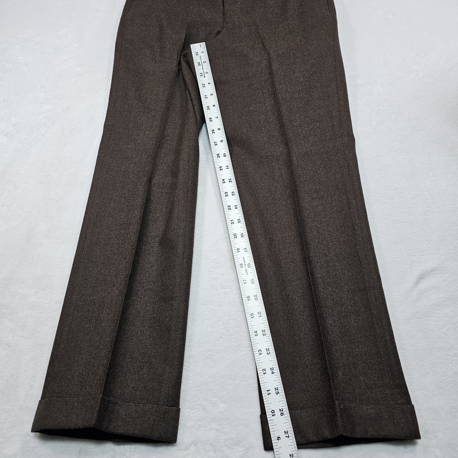 Vtg 80's Trousers Mens 30x27 Flannel 100 Wool Chocolate Brown Cuffed Flat Front