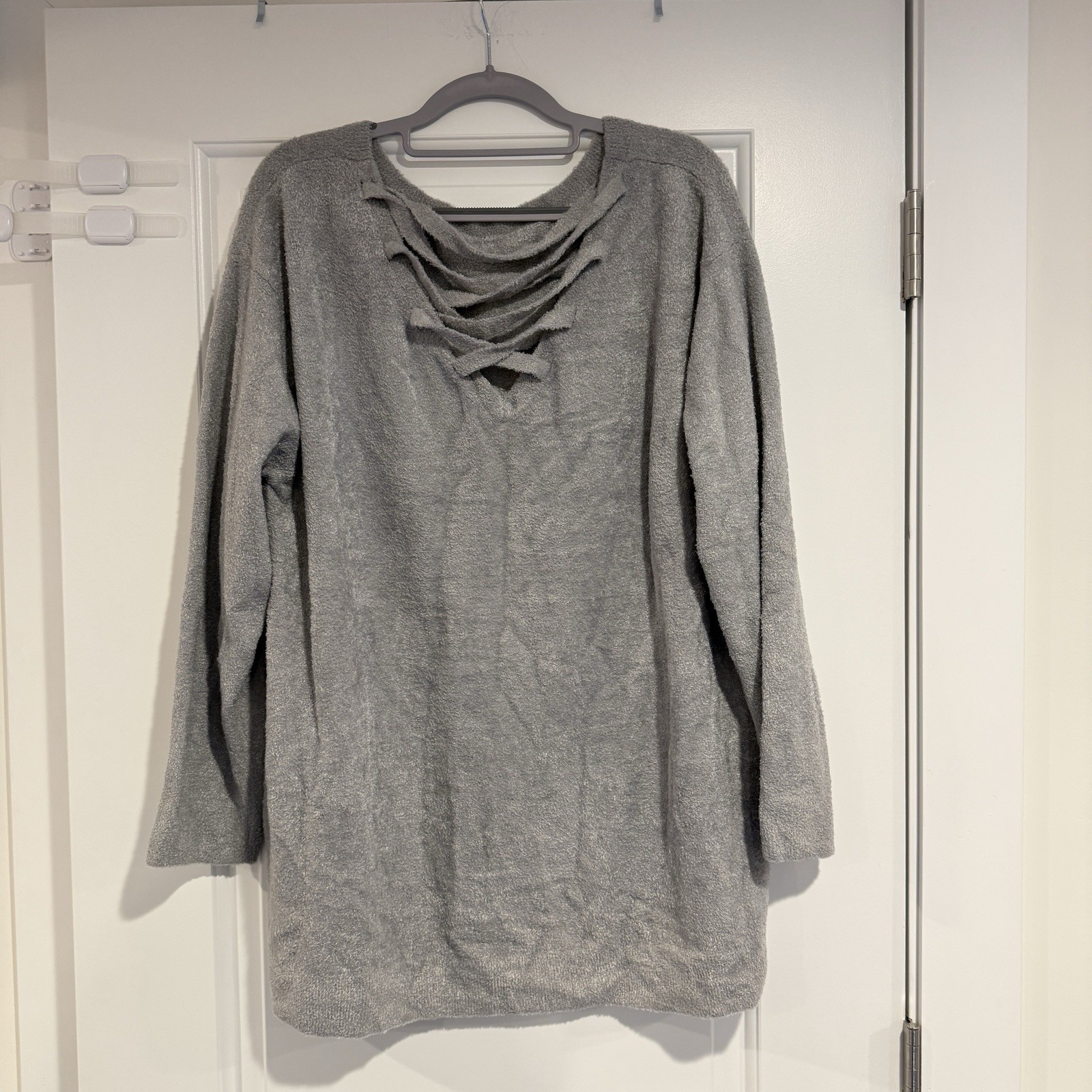 как выглядит Barefoot Dreams Cozychic Lite Lace Back Pullover Sweater Gray Size 1X NWT фото