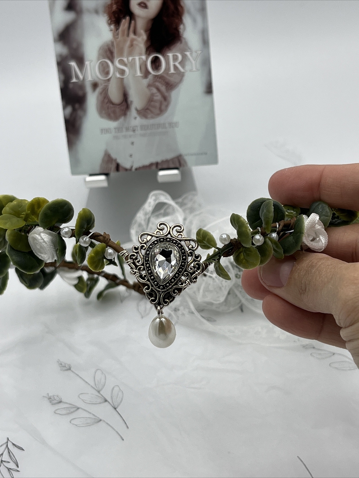 MOSTORY Woodland Flower Crown - Floral Headpiece With Gem. Free Ship