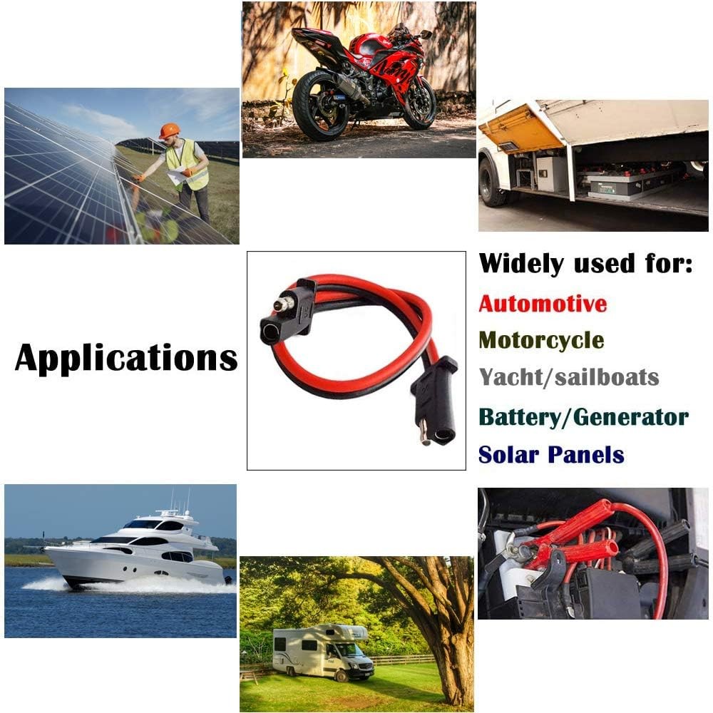 5 Pack 12 10 Gauge 2 Pin Quick Disconnect Wire Harness, Heavy Duty SAE Connecto