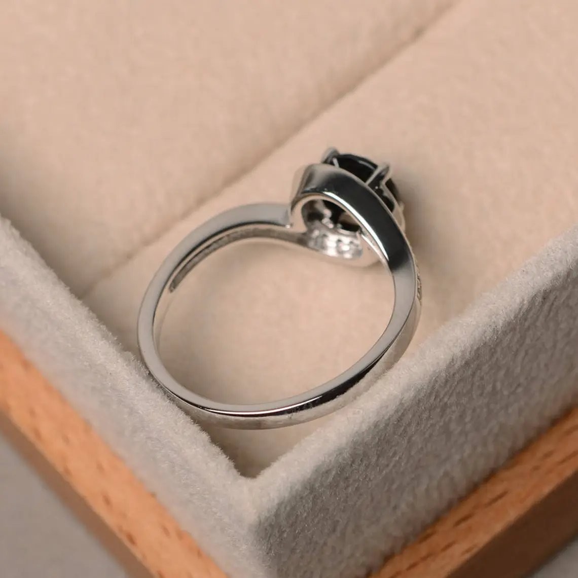 как выглядит Black Onyx Round Gemstone 925 Sterling Silver Minimal Halo Ring Duty Free фото