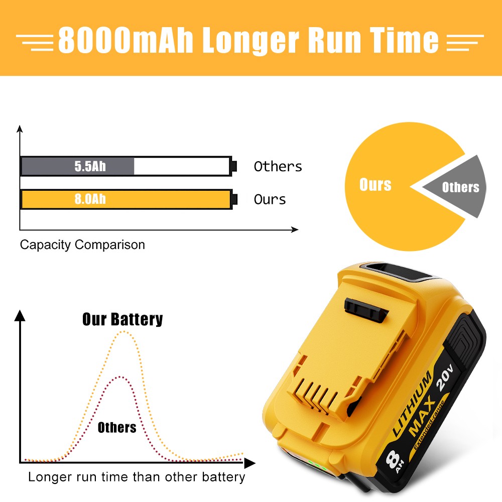Replace Original Dewalt Battery Code: DCB200,DCB200-2,DCB201,DCB201-2,DCB204-2,DCB205-2,For DCB182