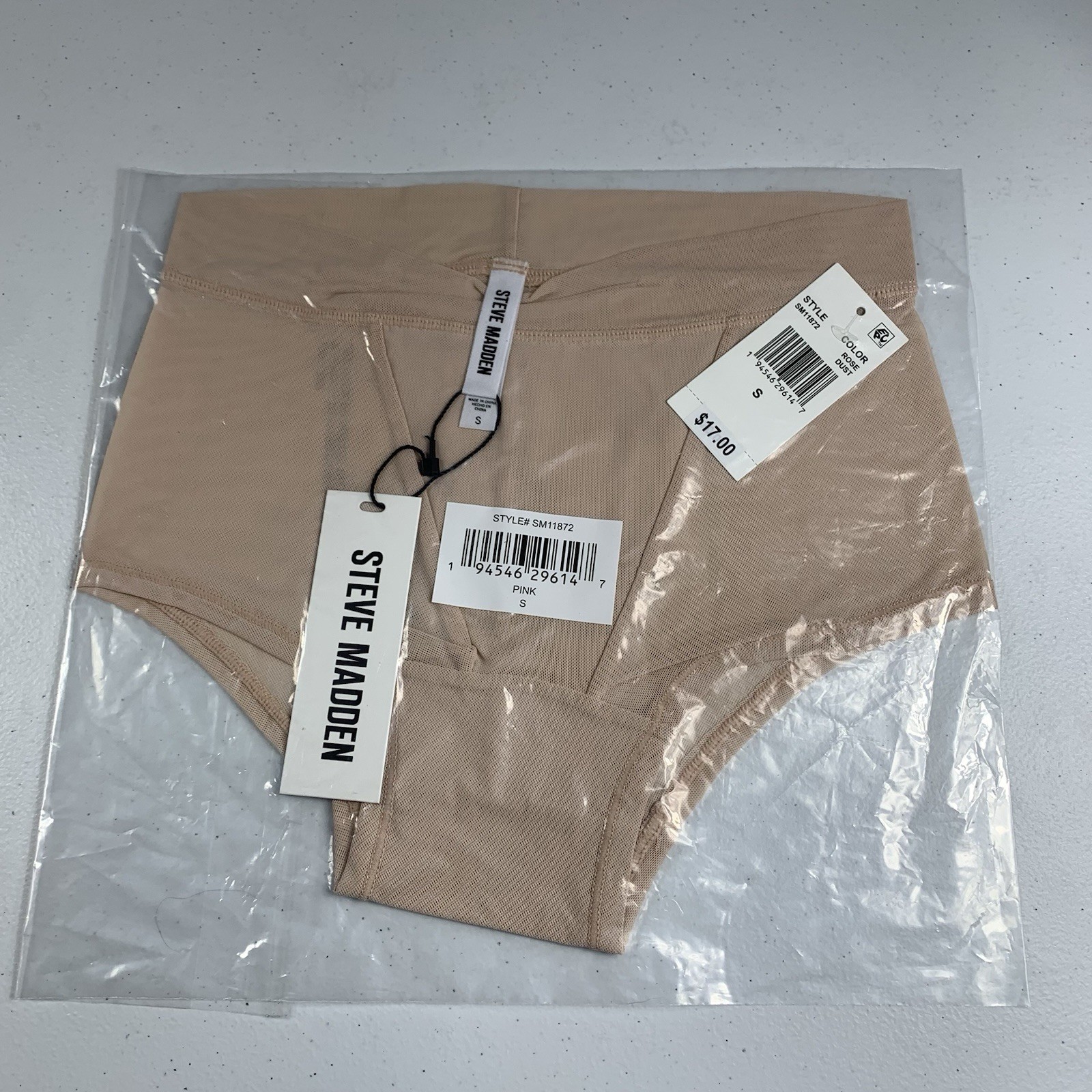 как выглядит Steve Madden Womens Underwear Mesh High Leg Bikini Rose Dust Pink Small фото