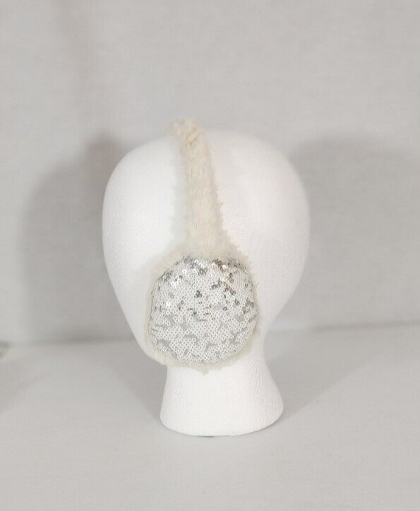 Ear Muffs Girl's White Sequin White Fur Band Padded Ears Glitter Winter One Size